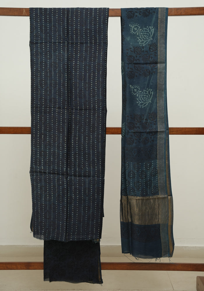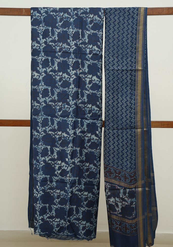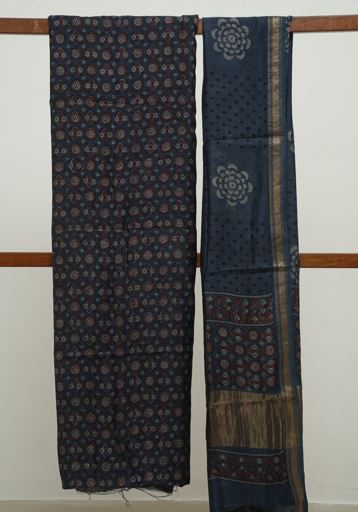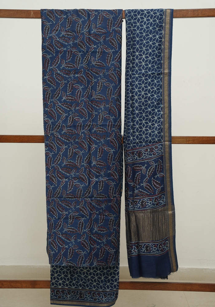 Dark Blue Ajrakh Printed Maheshwari Salwar Set