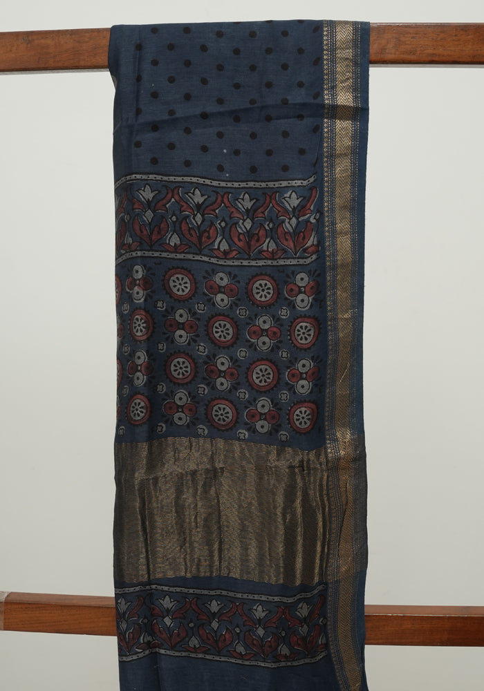 Top: Ajrakh Printed Maheshwari (Width 2.28 mts/Length 2.52 mts)