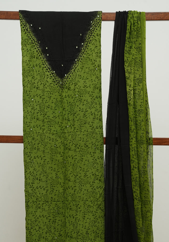 Olive Green and Black Unstitched Georgette Salwar Set with Mirror Work