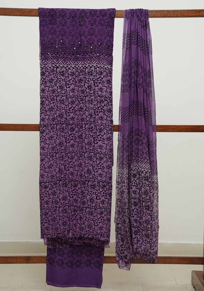 Purple and Dark Purple Unstitched Georgette Salwar Set with Batik Print
