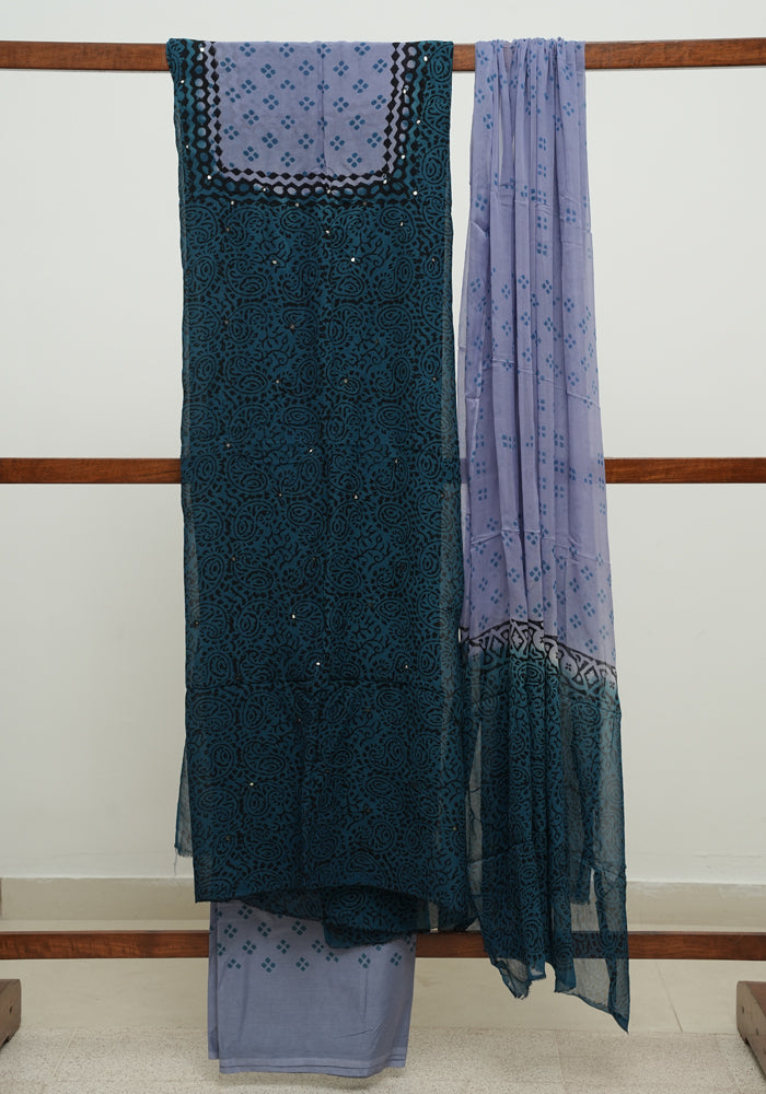Teal Blue and Bluish Grey Unstitched Georgette Salwar Set with Mirror Work