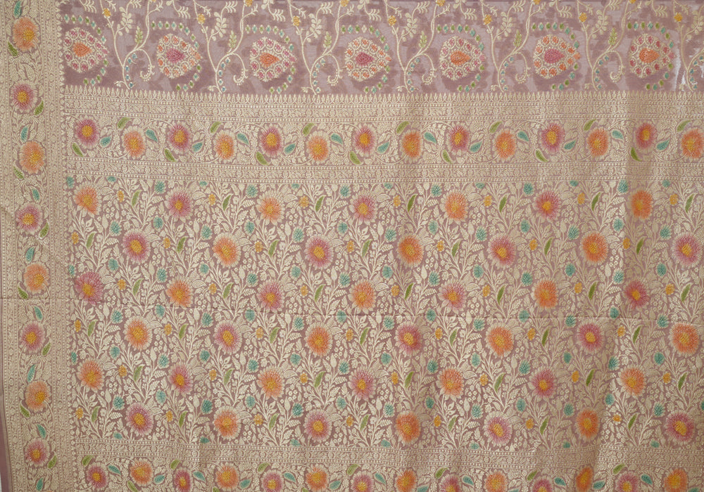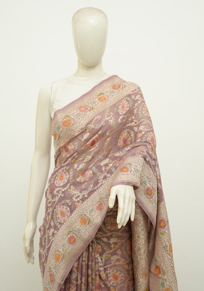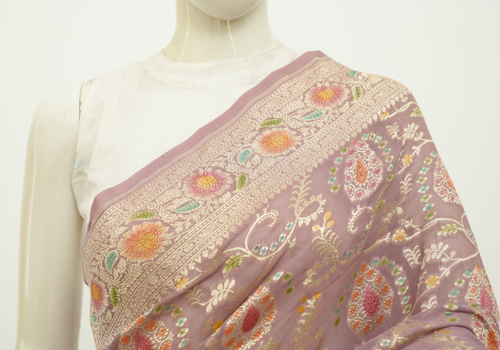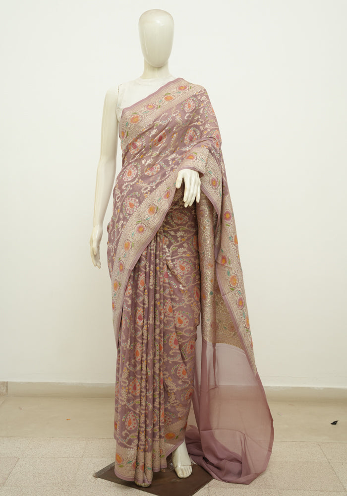 Mauve Pink Pure Georgette Silk Benarasi Saree