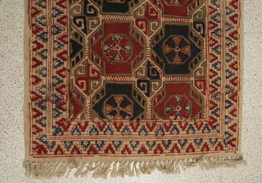 Handcrafted Handloom Cotton Dhurrie Carpet with Kalamkari hand blockprinted using natural dyes. This rug/Carpet adds a lovely ethnic touch to your space.