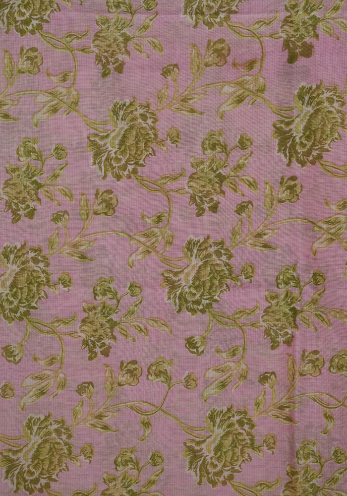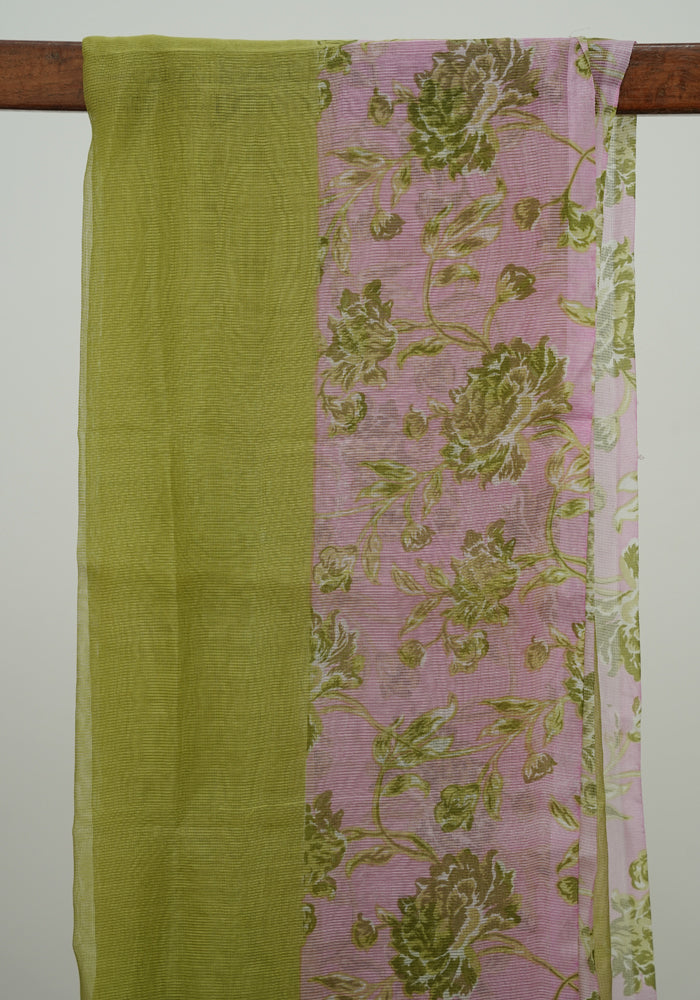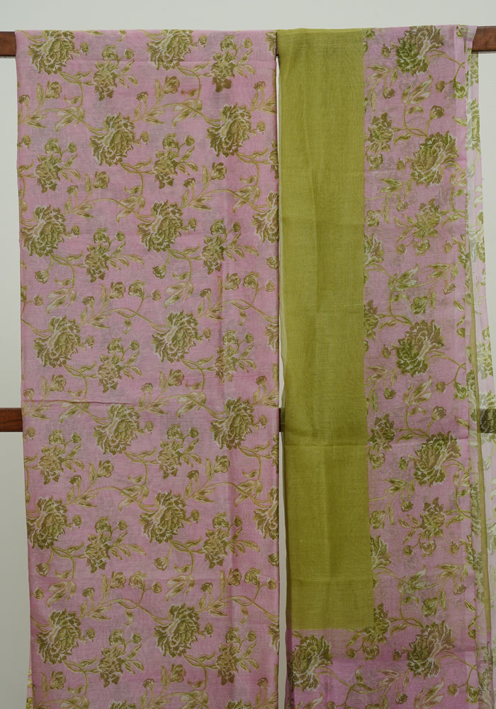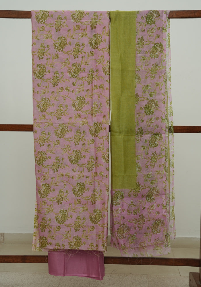 Pink and Olive Green Unstitched Chanderi Salwar Set with Supernet Dupatta