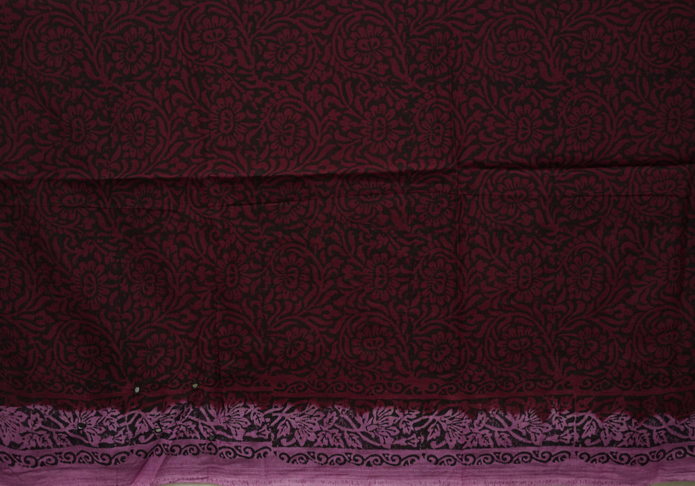 Purple and Red Block Printed Chennur Silk Saree with Mirror Work is OUT OF STOCK currently and available on pre-payment only. Order now for delivery within 2 weeks.