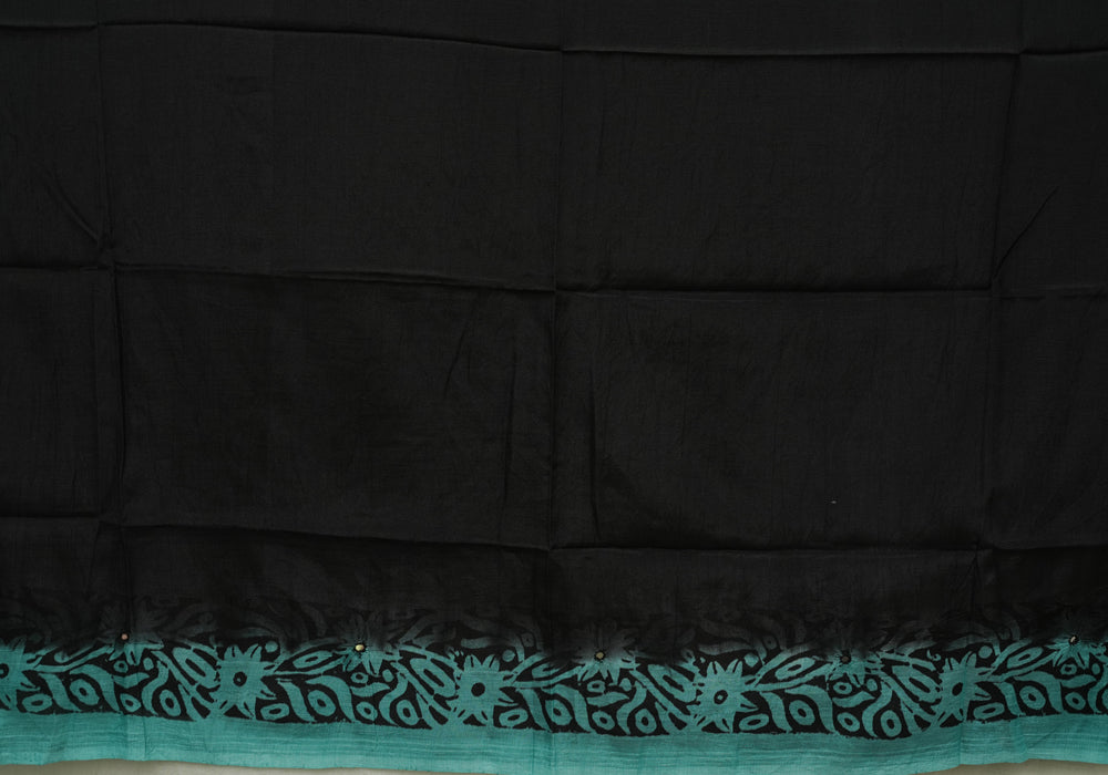 Sea green and Black Block Printed Chennur Silk Saree with Mirror Work is OUT OF STOCK currently and available on pre-payment only. Order now for delivery within 2 weeks.