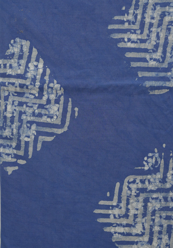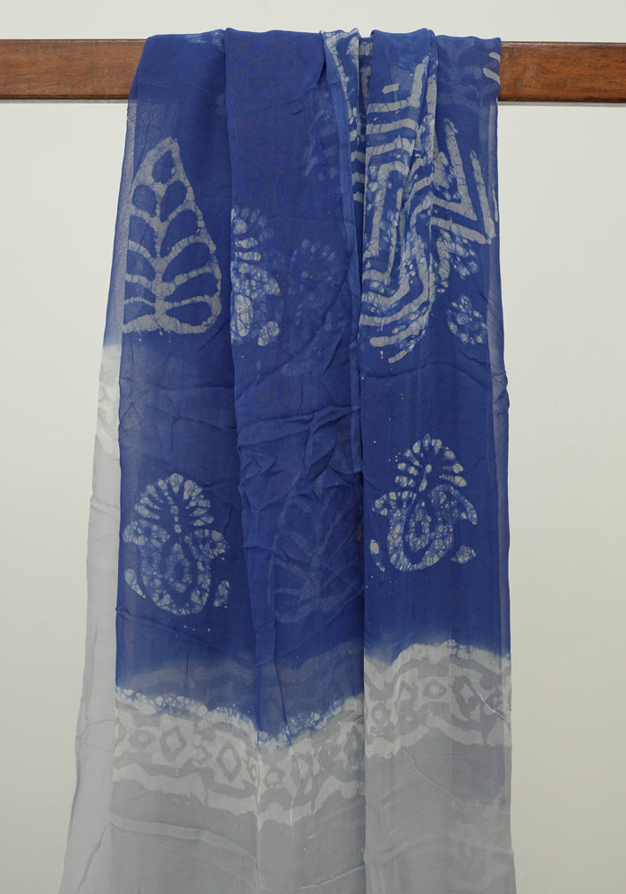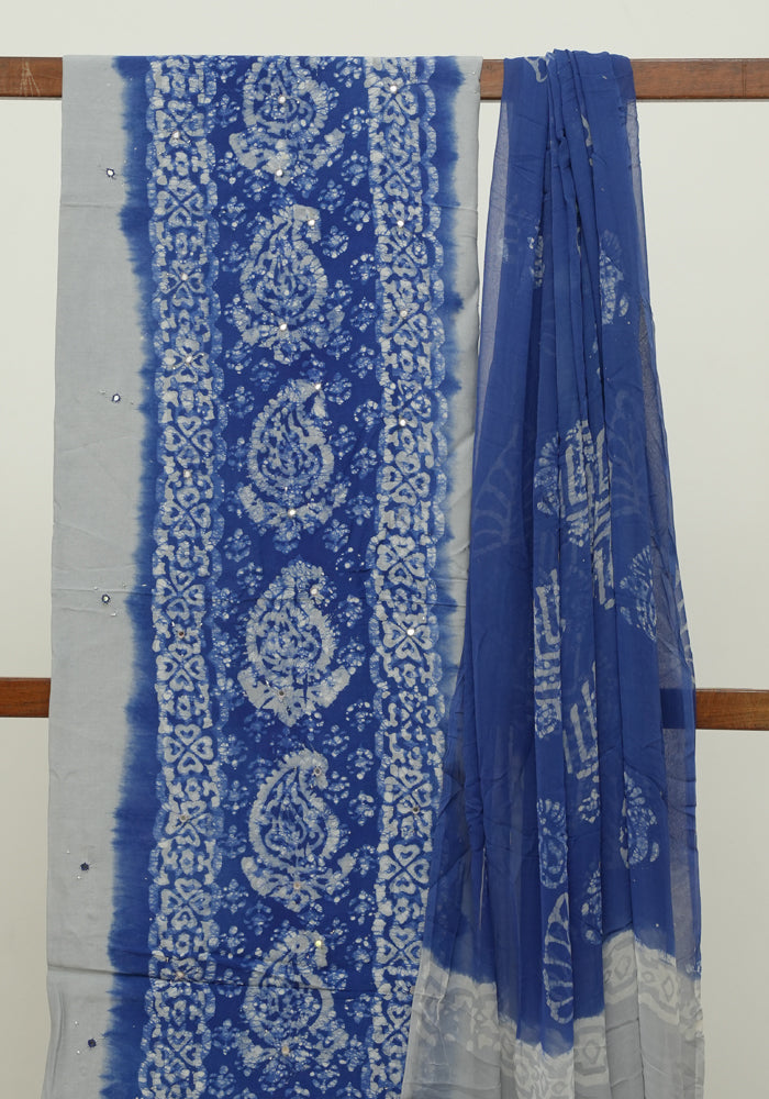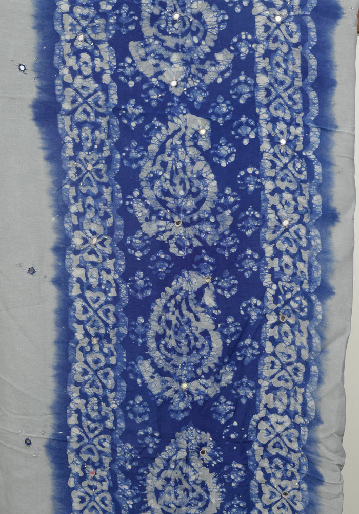 Grey and Blue Batik Unstitched Muslin Chennur Silk Salwar Set With Mirror and Badla Work