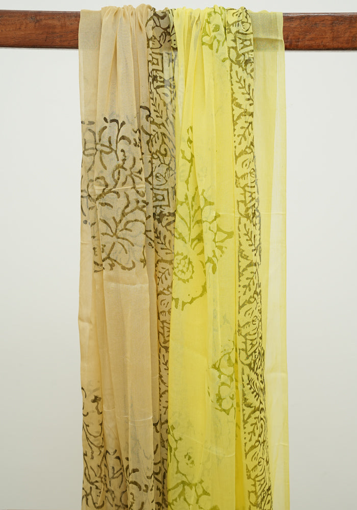 Desically Ethnic brings to you our newest offering, Unstitched Block Printed Chennur Silk Salwar Sets . All our designs are one of  kind and they come as a 3 pc set - Top, Bottom and Dupatta.