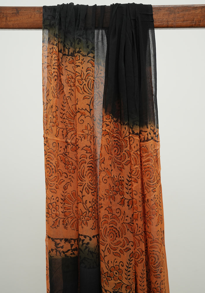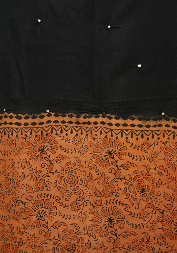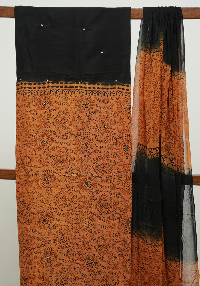 Orange and Black Unstitched Chennur Silk Salwar Set With Mirror Work is OUT OF STOCK currently and available on pre-payment only. Order now for delivery within 2 weeks.