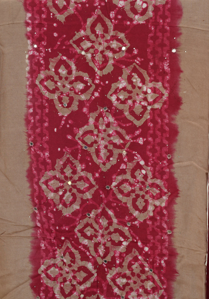 Light Brown and Red Batik Unstitched Muslin Chennur Silk Salwar Set With Mirror and Badla Work