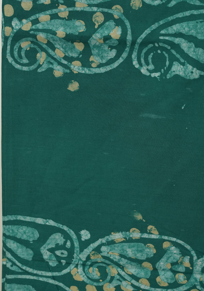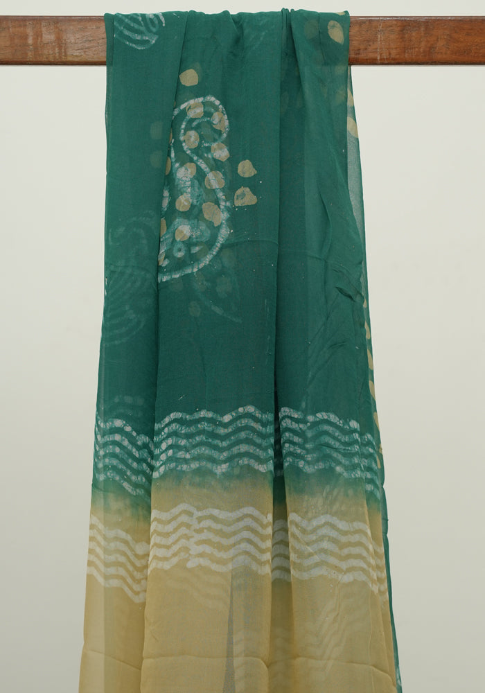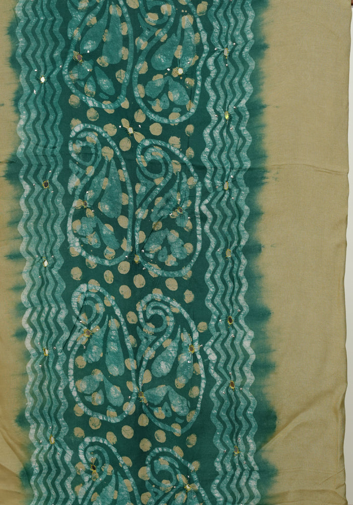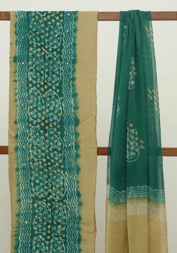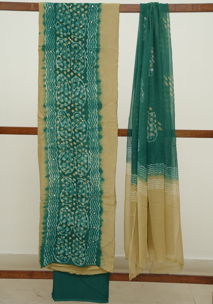 Light Green and Green Batik Unstitched Muslin Chennur Silk Salwar Set With Mirror and Badla Work