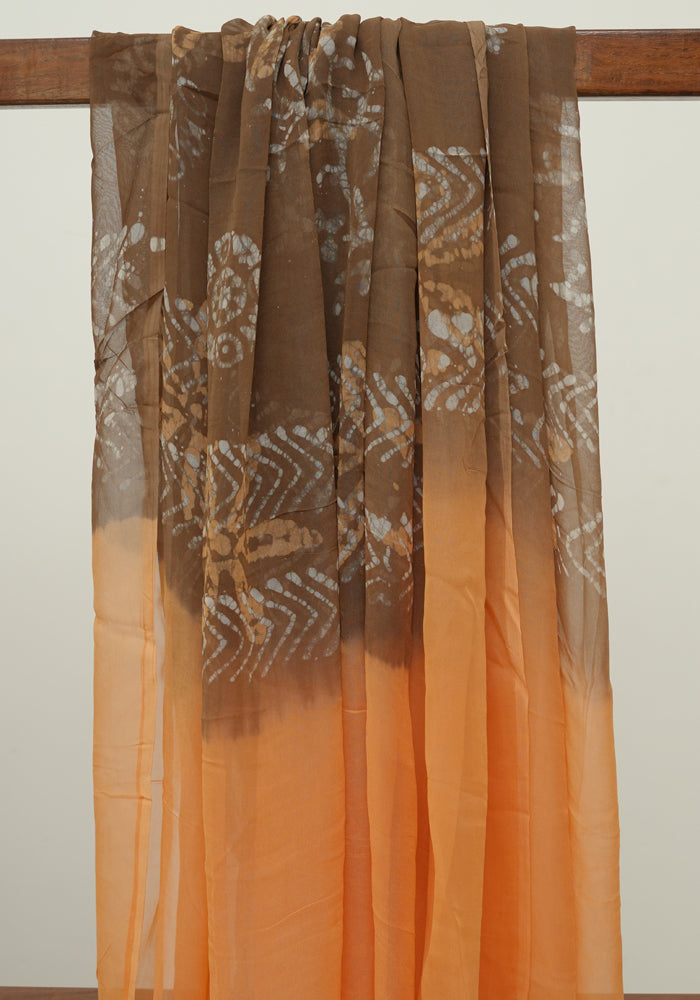 Light Orange and Brown Batik Unstitched Muslin Chennur Silk Salwar Set With Mirror and Badla Work is OUT OF STOCK currently and available on pre-payment only. Order now for delivery within 2 weeks.