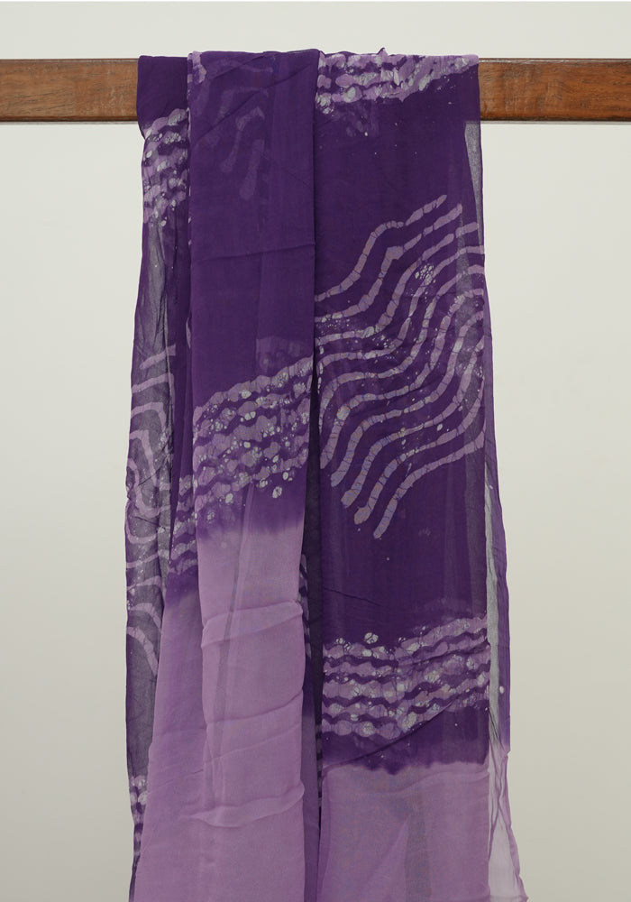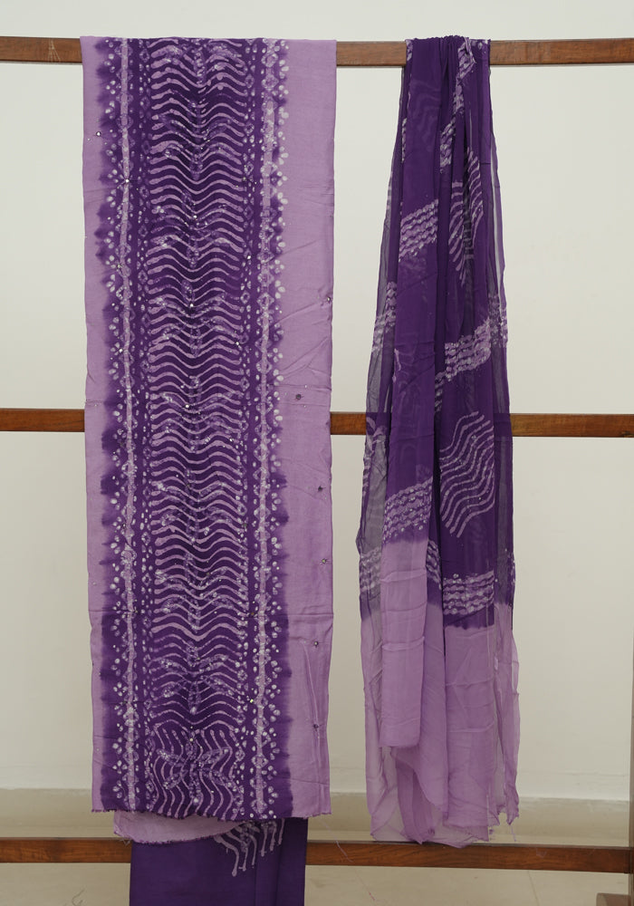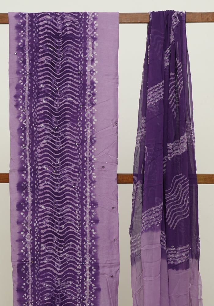 Light Purple and Dark Purple Batik Unstitched Muslin Chennur Silk Salwar Set With Mirror and Badla Work