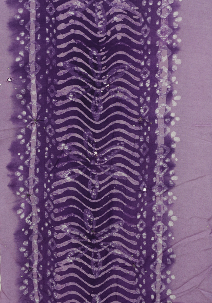 Light Purple and Dark Purple Batik Unstitched Muslin Chennur Silk Salwar Set With Mirror and Badla Work is OUT OF STOCK currently and available on pre-payment only. Order now for delivery within 2 weeks.