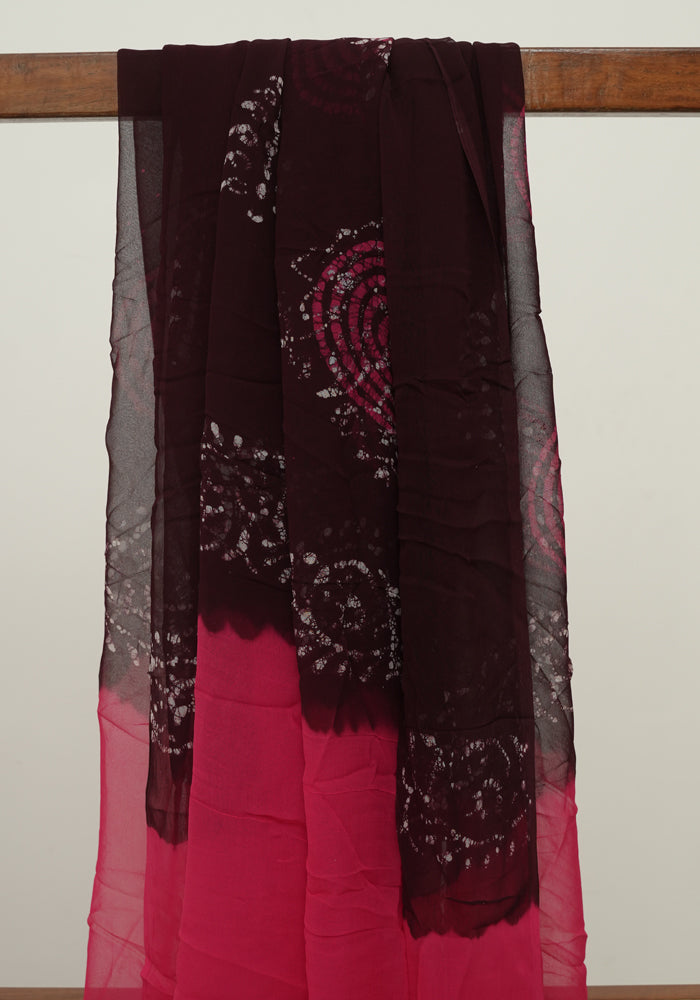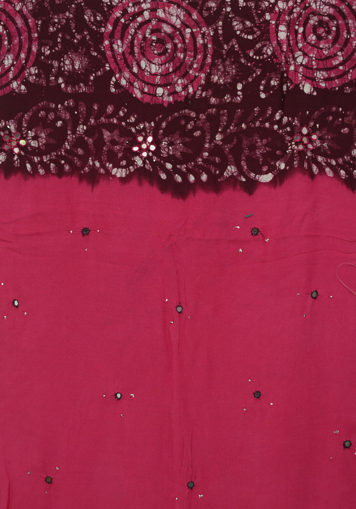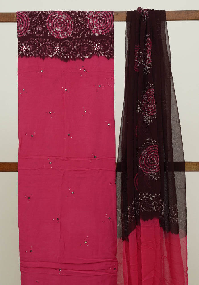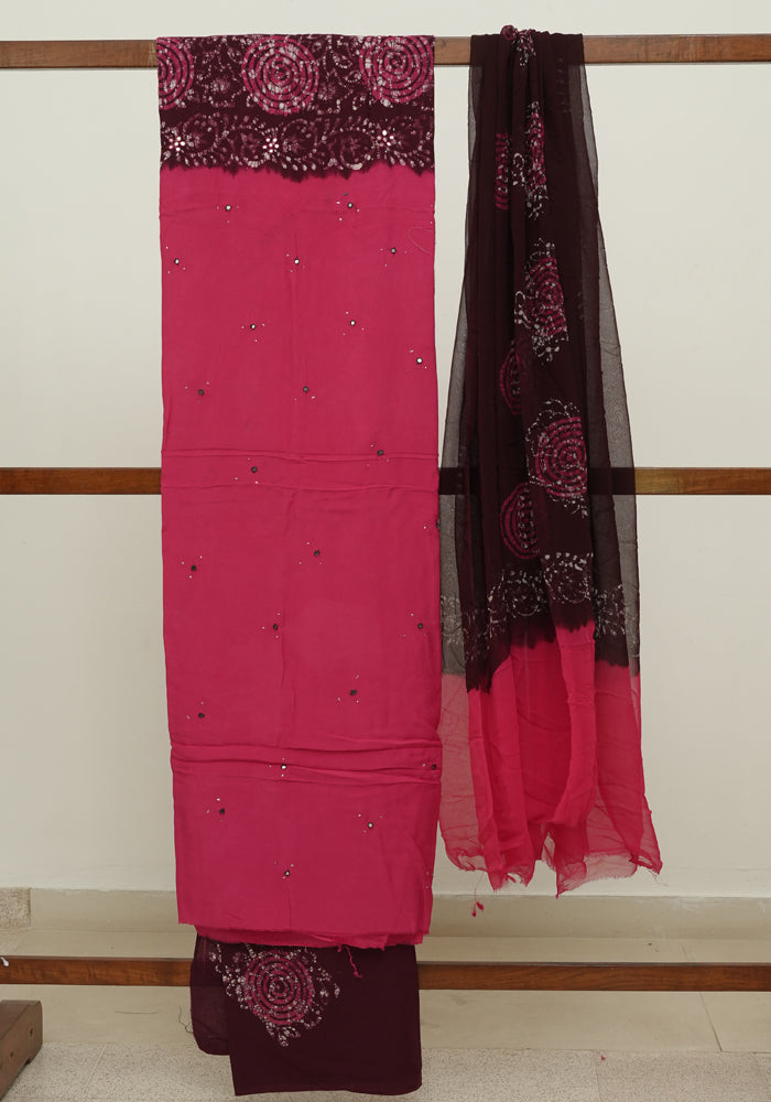 Pink and Jamun Red Batik Unstitched Muslin Chennur Silk Salwar Set With Mirror and Badla Work
