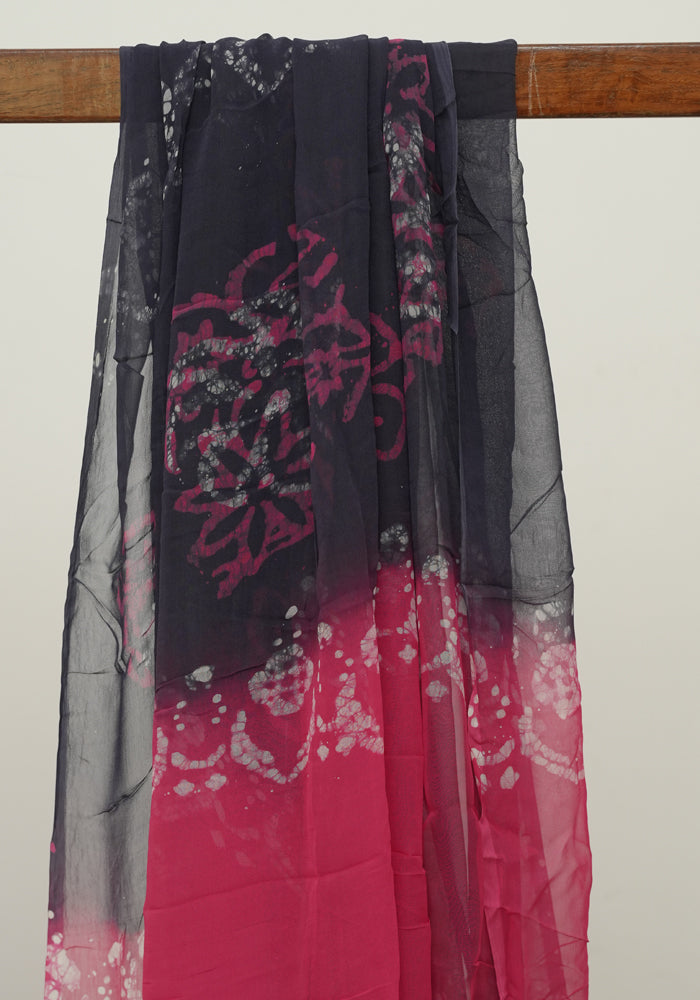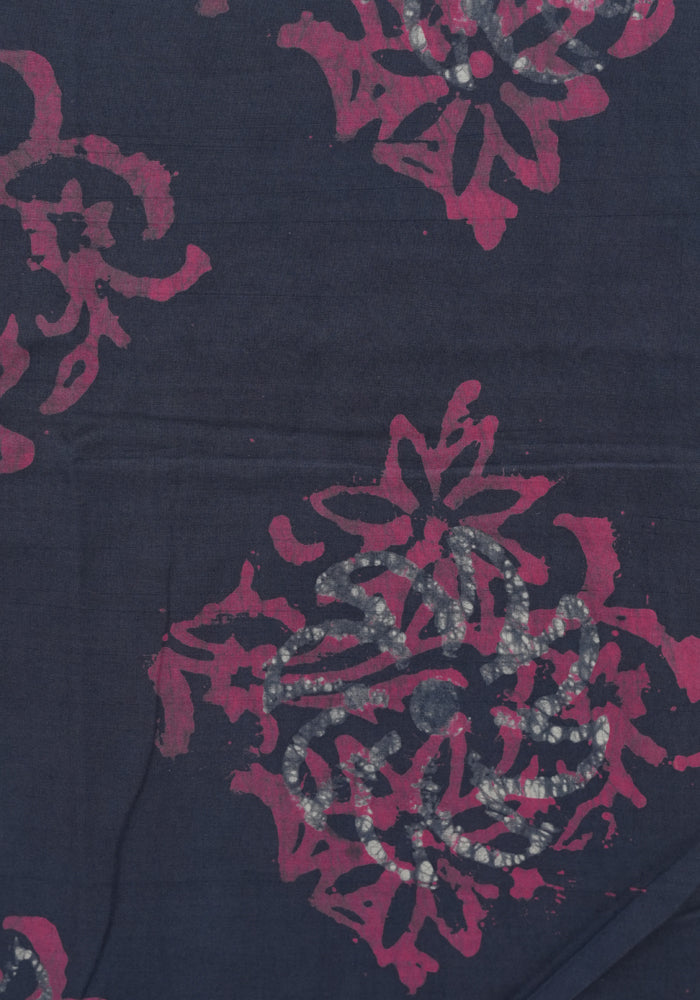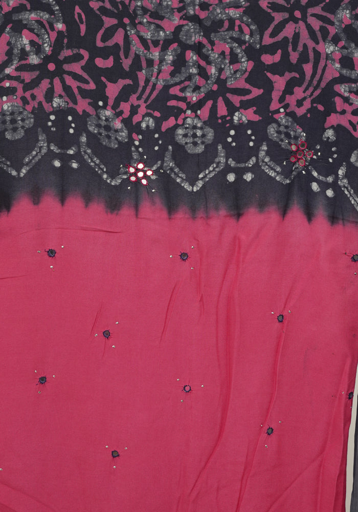 Pink and Navy Blue Batik Unstitched Muslin Chennur Silk Salwar Set With Mirror and Badla Work is OUT OF STOCK currently and available on pre-payment only. Order now for delivery within 2 weeks.