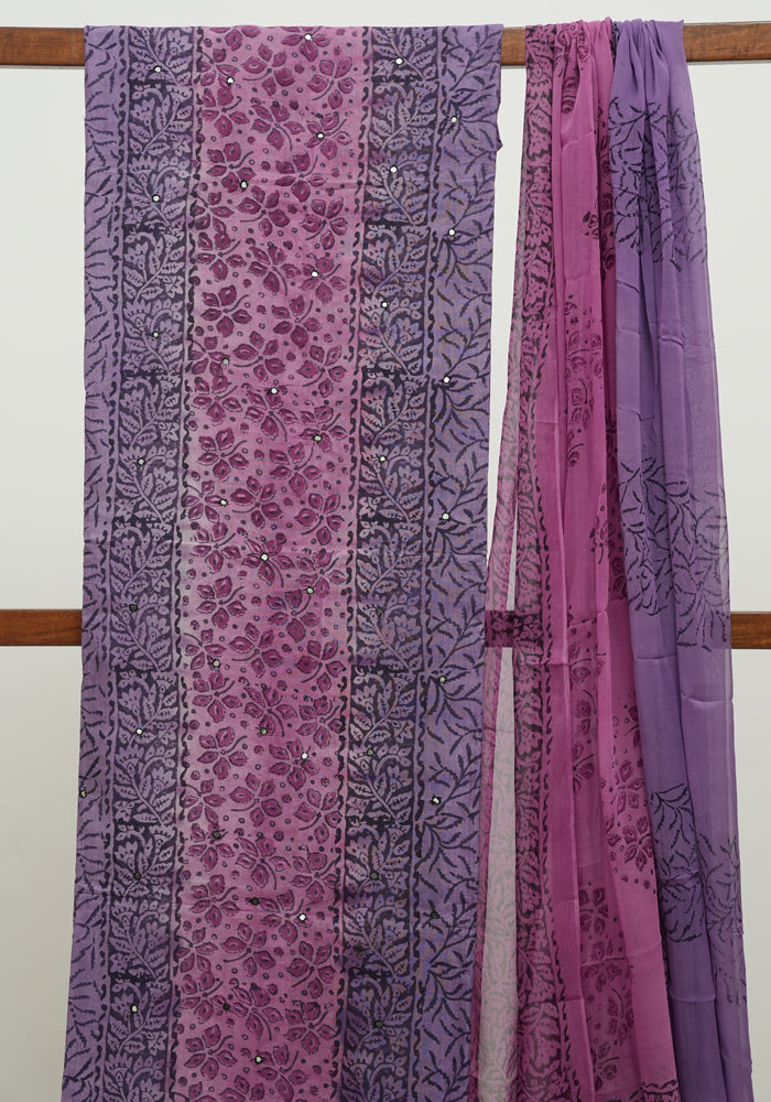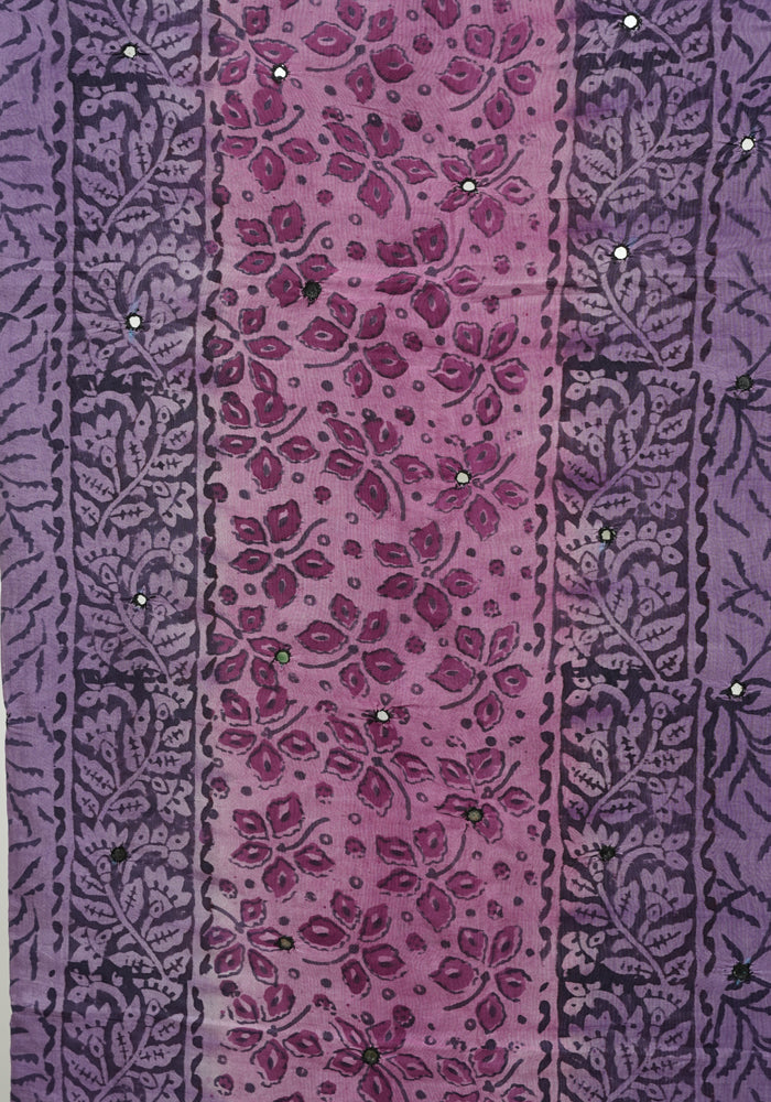 Purple and Pink Unstitched Chennur Silk Salwar Set With Mirror Work is OUT OF STOCK currently and available on pre-payment only. Order now for delivery within 2 weeks.