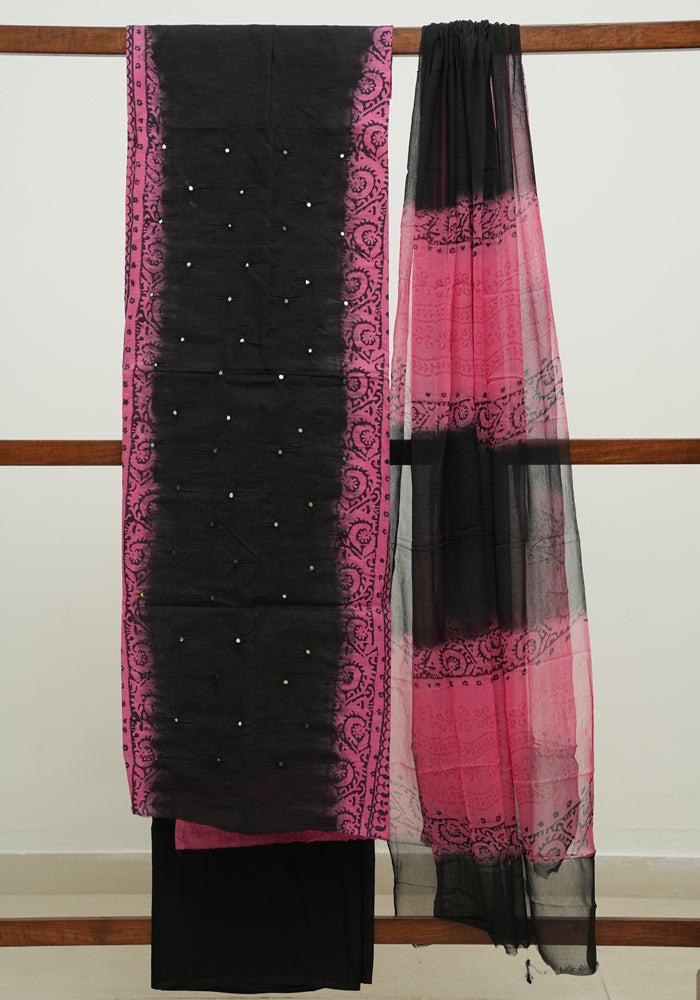 Pink and Black Unstitched Cotton Salwar Set With Mirror Work