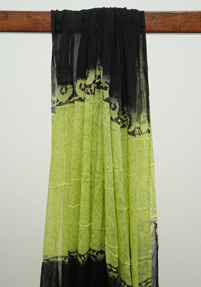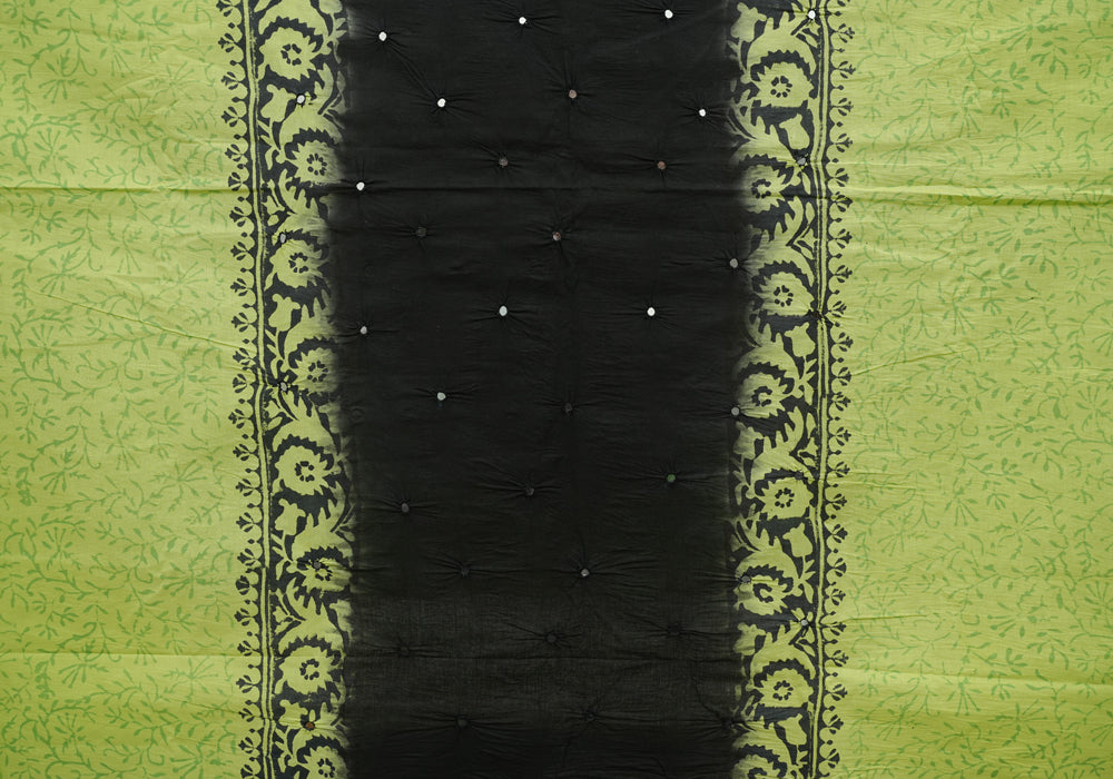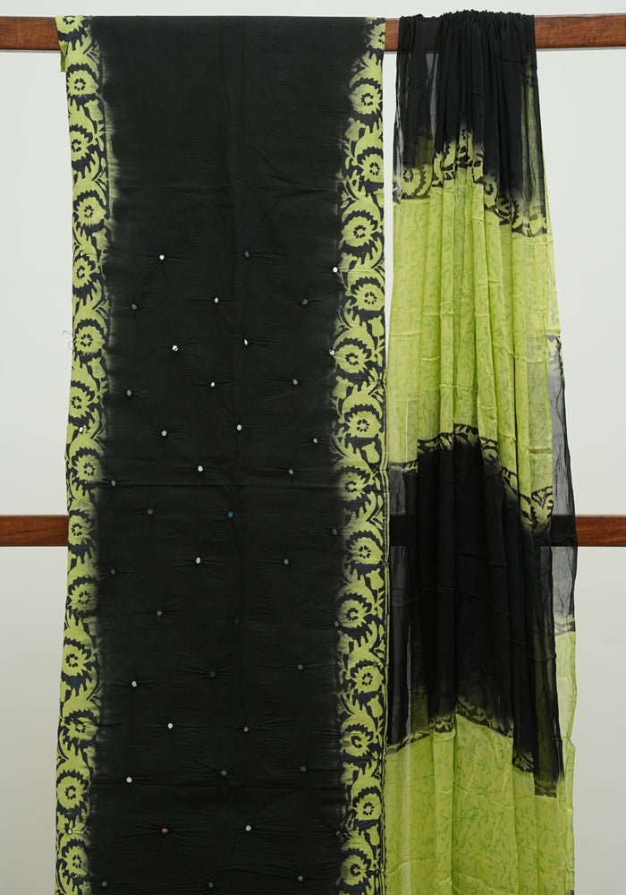 Light Green and Black Unstitched Cotton Salwar Set With Mirror Work