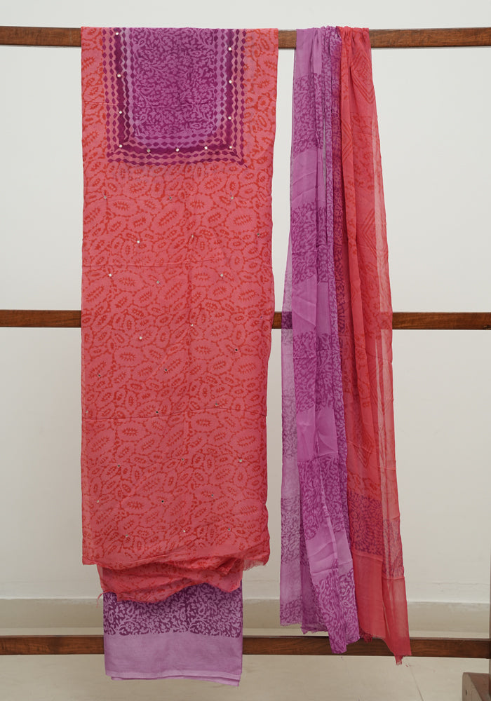 Orange and Pink Unstitched Georgette Salwar Set with Mirror Work