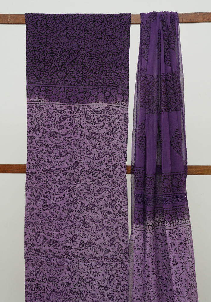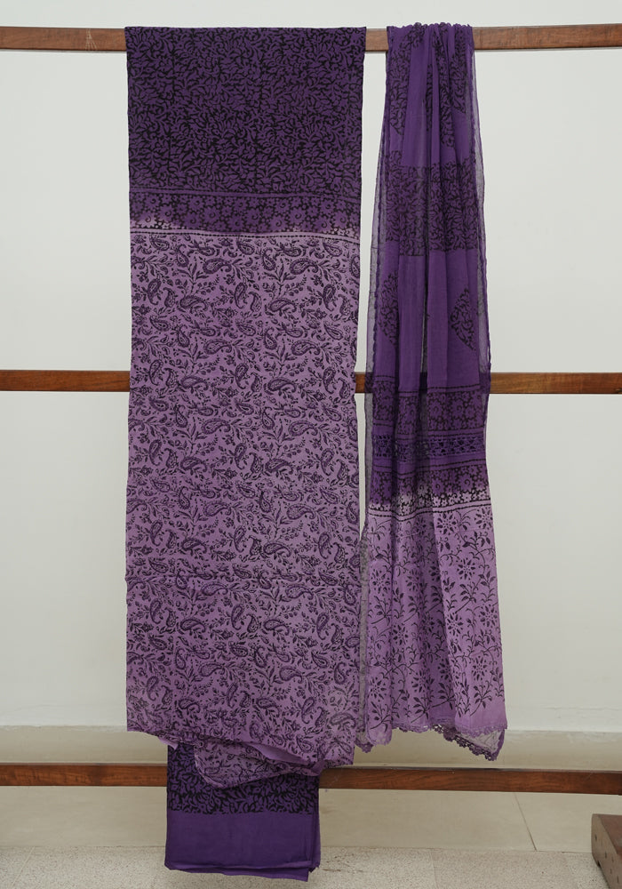 Light Purple and Dark Purple Unstitched Blockprinted Georgette Salwar Set