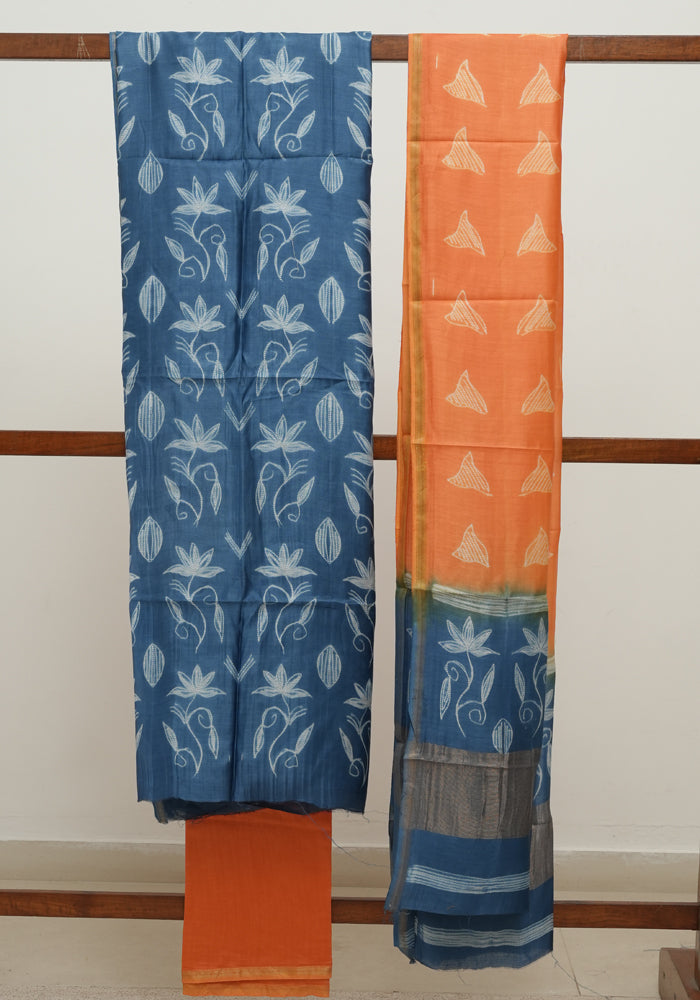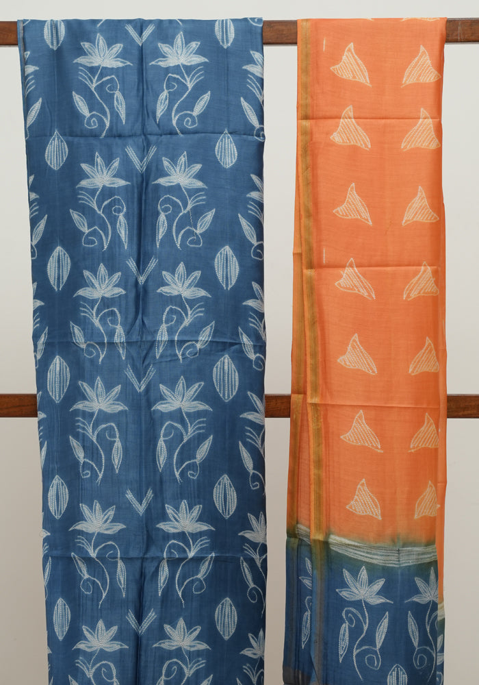Blue and Orange Shibori Maheshwari Salwar Set is OUT OF STOCK currently and available on pre-payment only. Order now for delivery within 2 weeks.