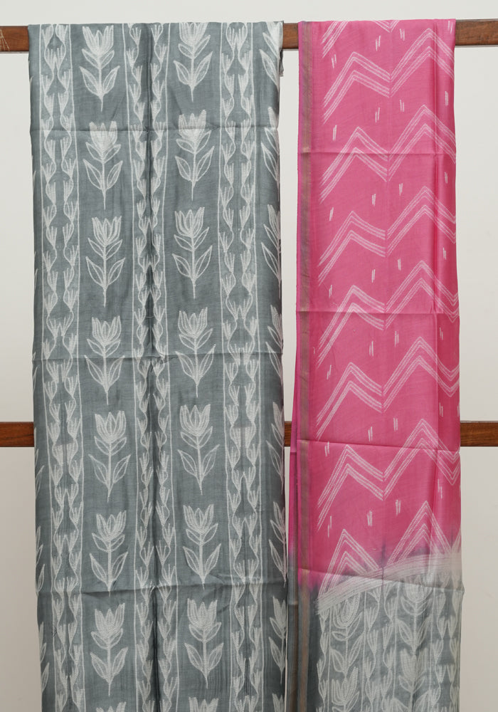 Grey and Rani Pink Shibori Maheshwari Salwar Set