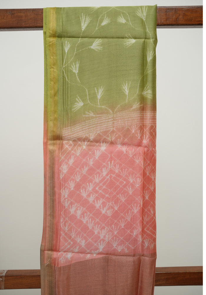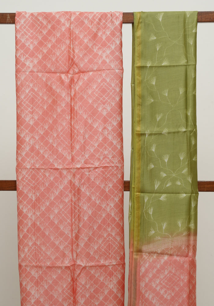 Light Orange and Light Green Shibori Maheshwari Salwar Set