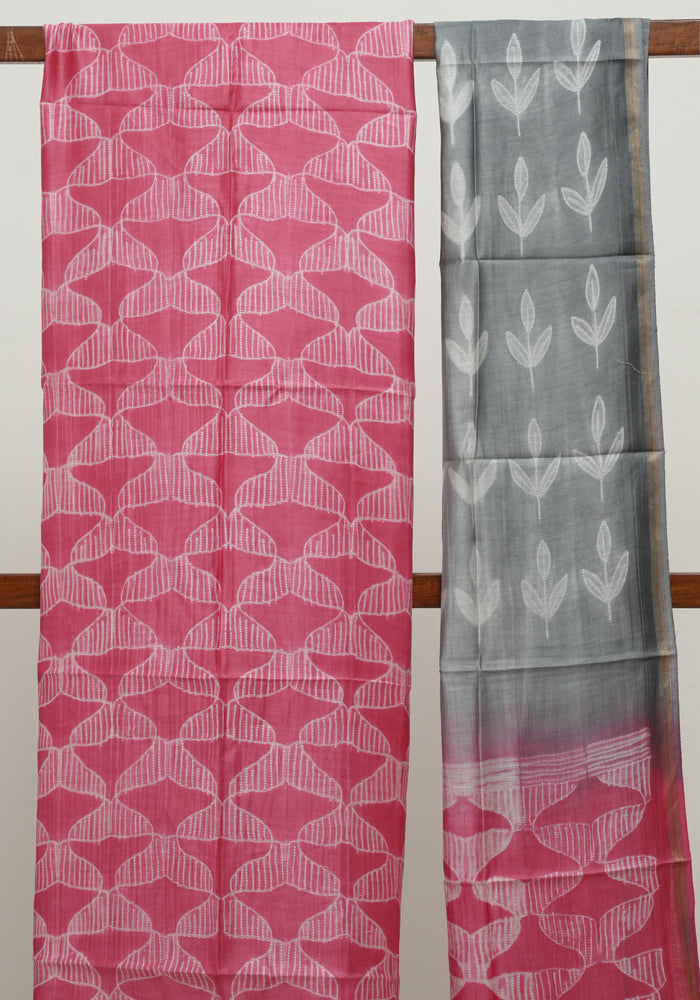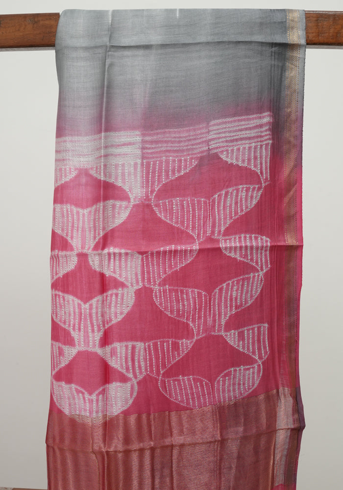Pink and Grey Shibori Maheshwari Salwar Set is OUT OF STOCK currently and available on pre-payment only. Order now for delivery within 2 weeks.
