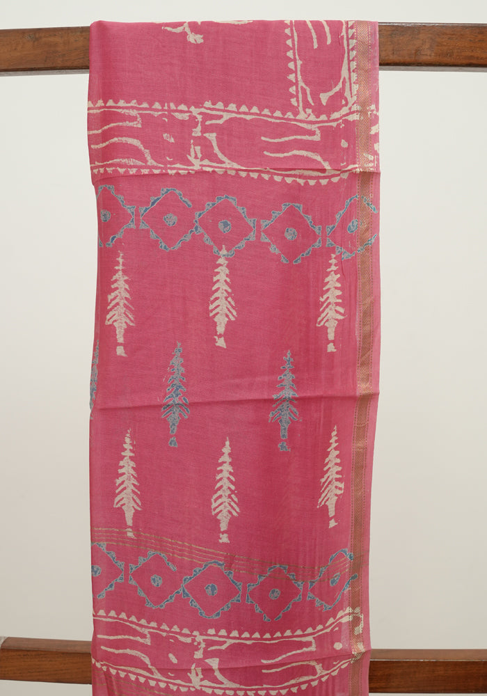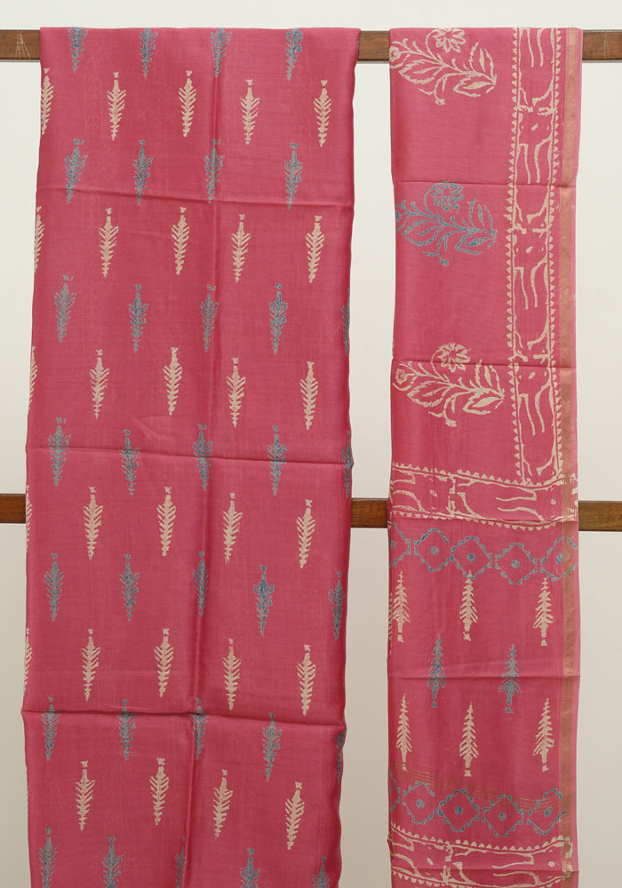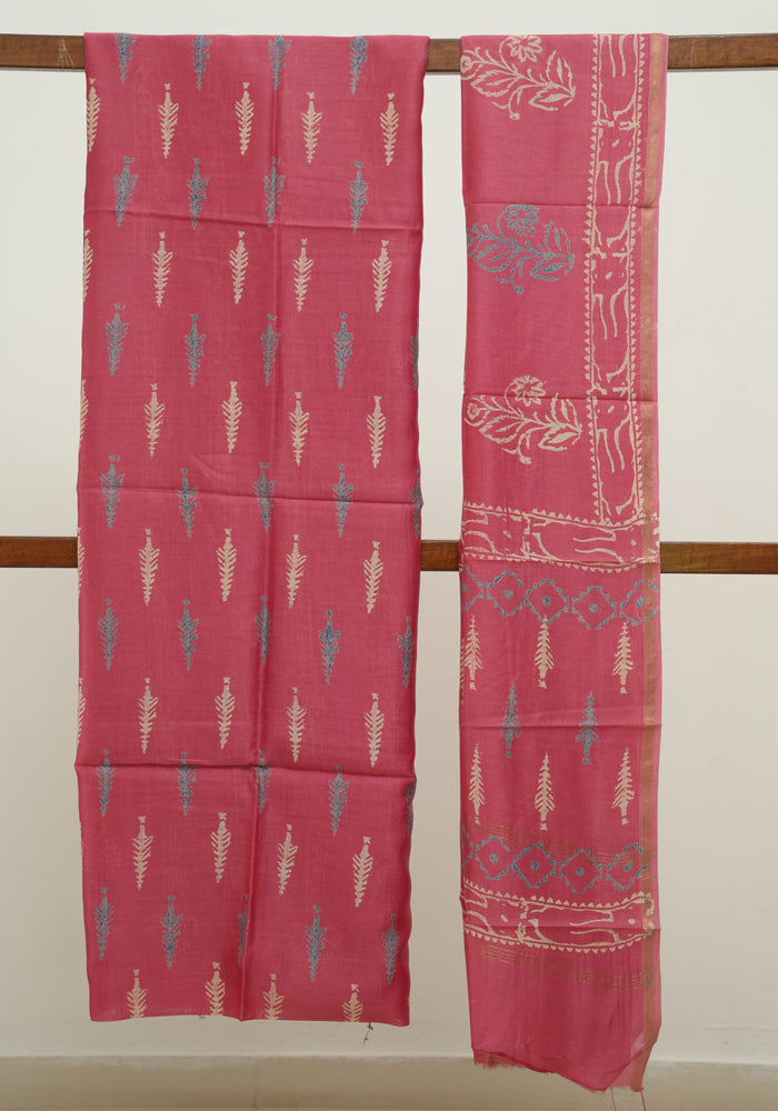 Pink Block Printed Maheshwari Salwar Set is OUT OF STOCK currently and available on pre-payment only. Order now for delivery within 2 weeks.