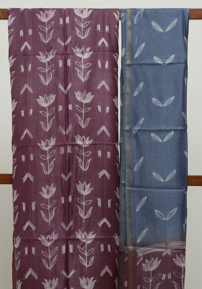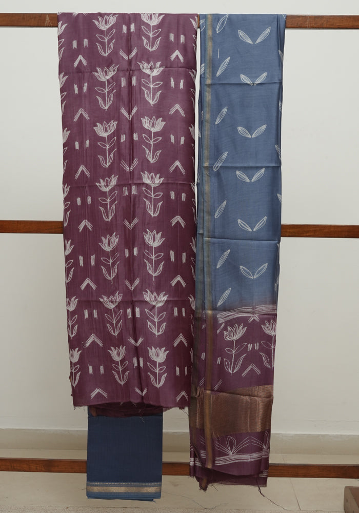 Purple and Grey Shibori Maheshwari Salwar Set is OUT OF STOCK currently and available on pre-payment only. Order now for delivery within 2 weeks.
