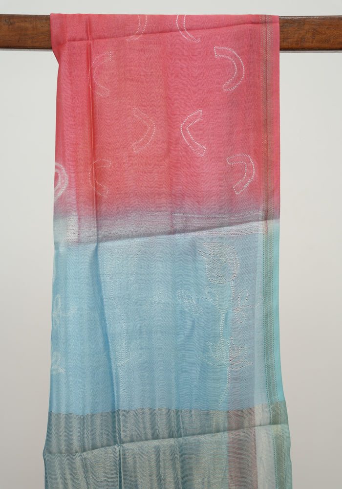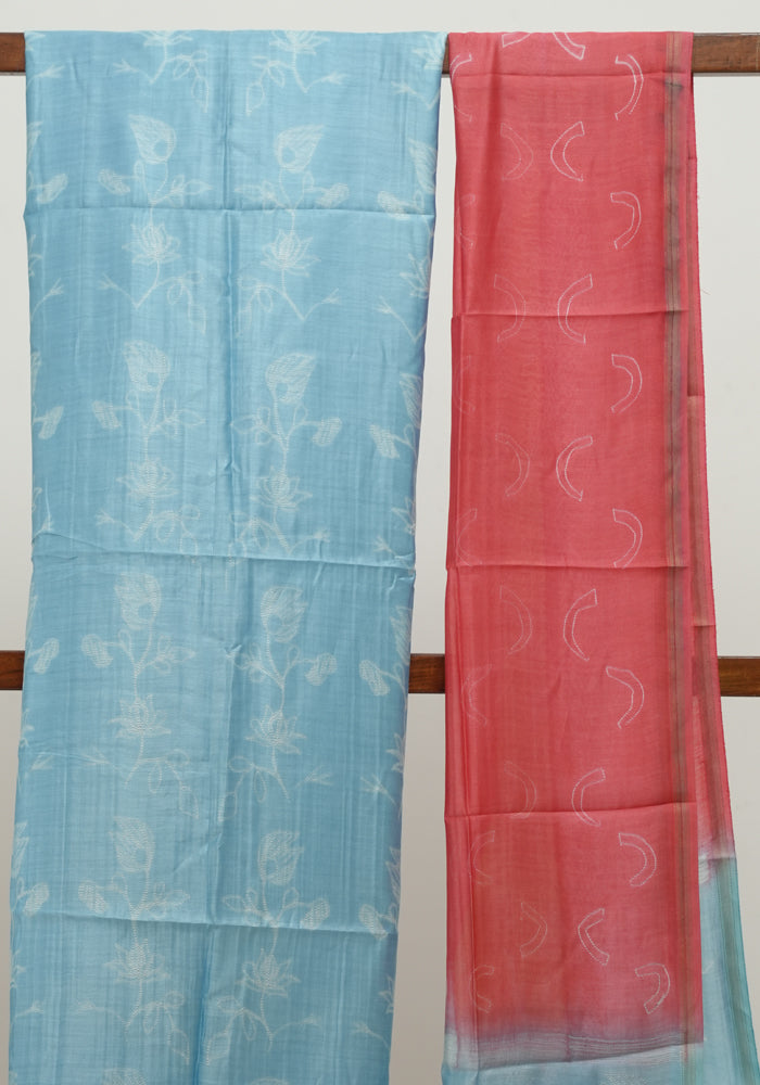 Sky Blue and Red Shibori Maheshwari Salwar Set