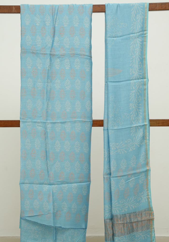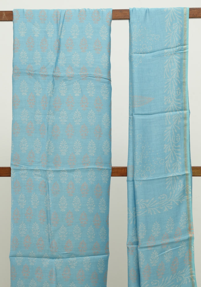 Sky Blue Block Printed Maheshwari Salwar Set is OUT OF STOCK currently and available on pre-payment only. Order now for delivery within 2 weeks.