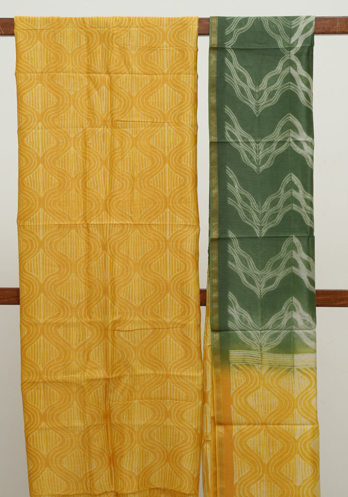 Yellow and Green Shibori Maheshwari Salwar Set