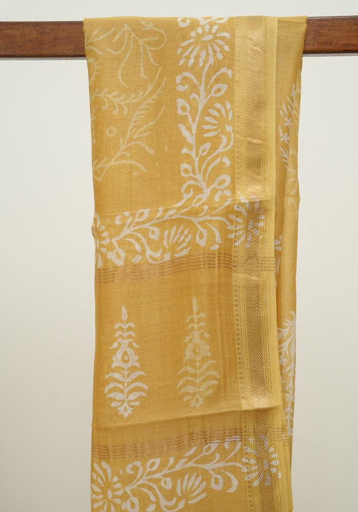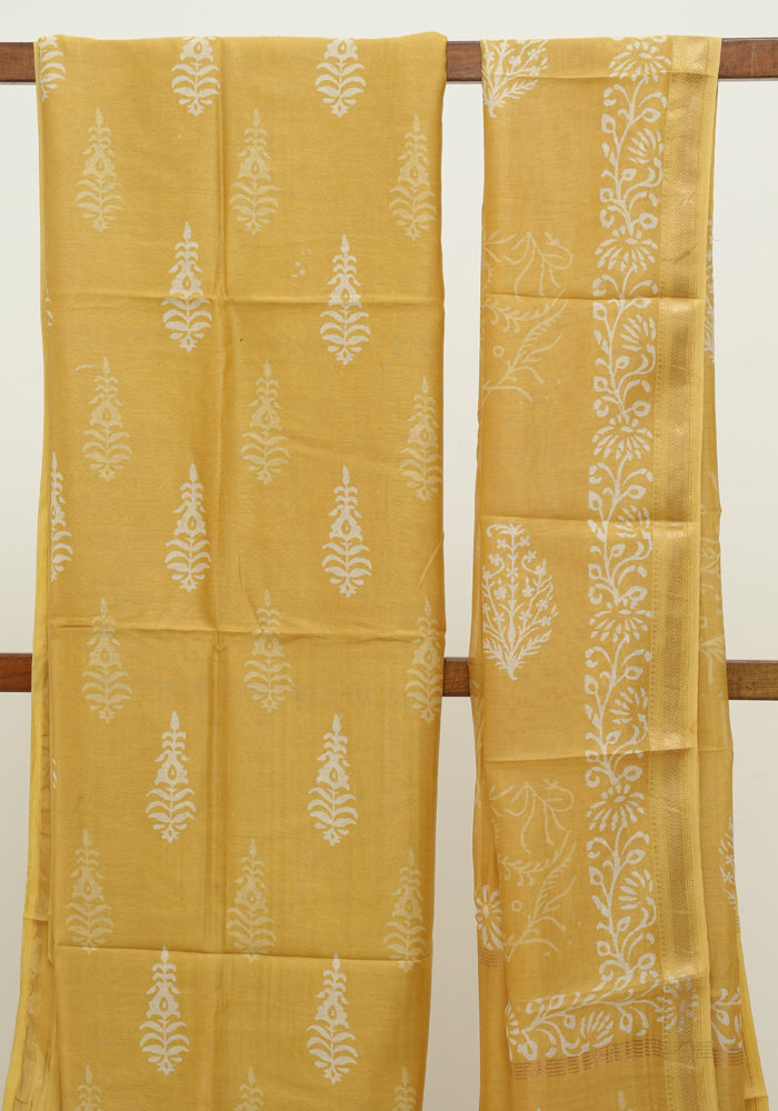 Yellow Block Printed Maheshwari Salwar Set