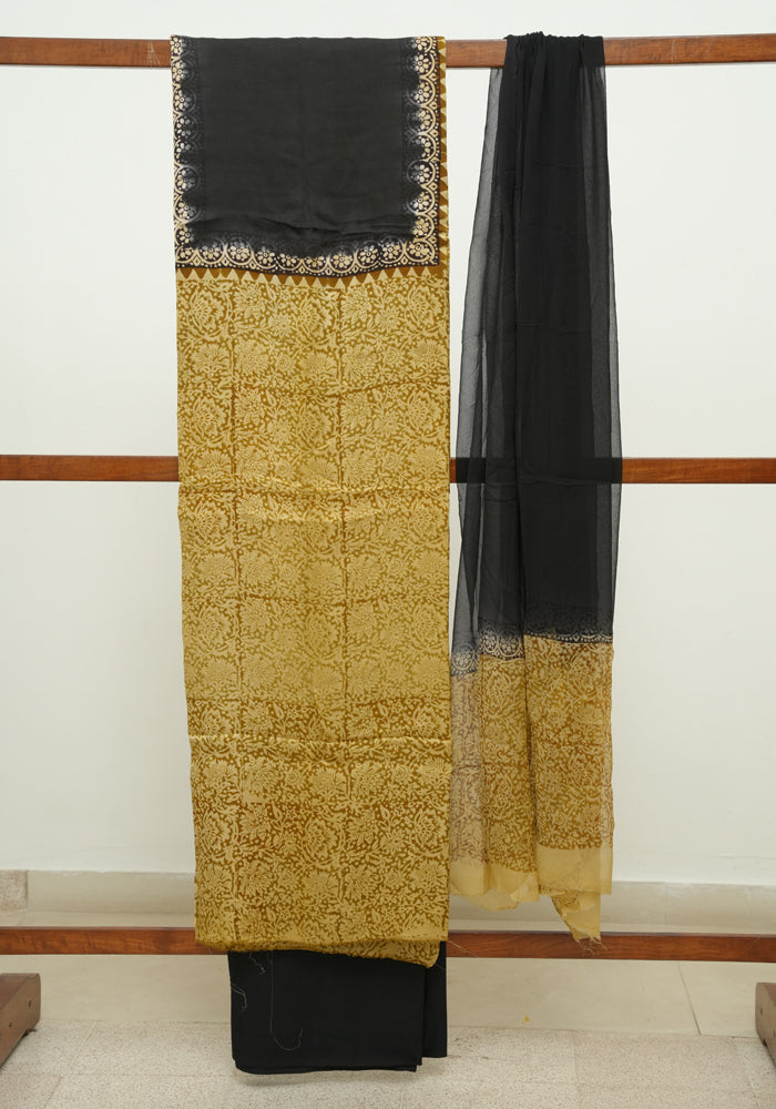 Desically Ethnic brings to you our newest offering, Unstitched Block Printed Modal silk Salwar Sets.All our designs are one of kind and they come as a 3 pc set - Top, Bottom and Dupatta.