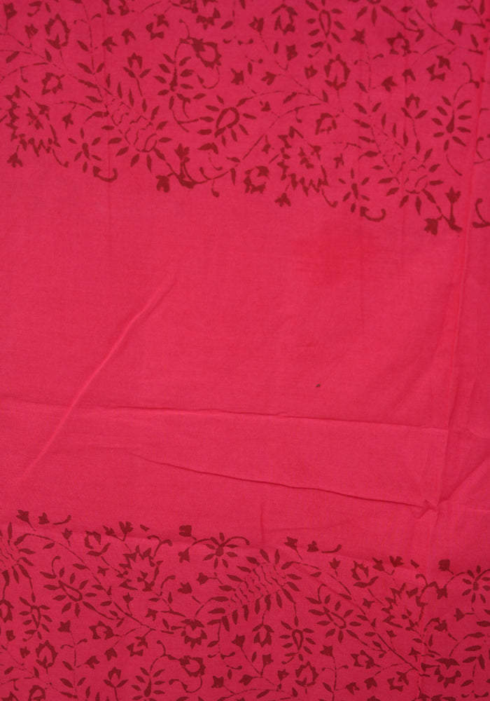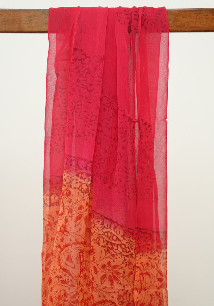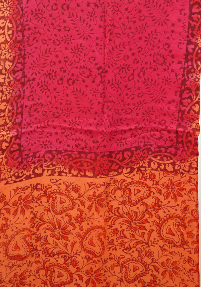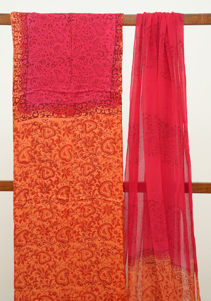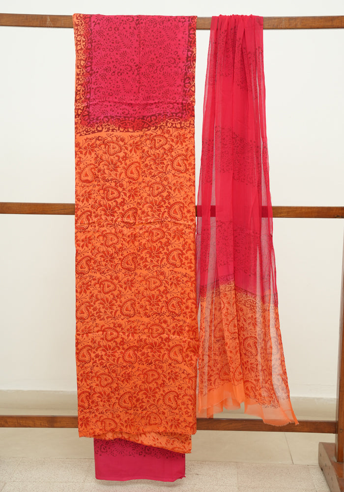 Orange and Red Modal Silk Block Printed Unstitched Salwar Set