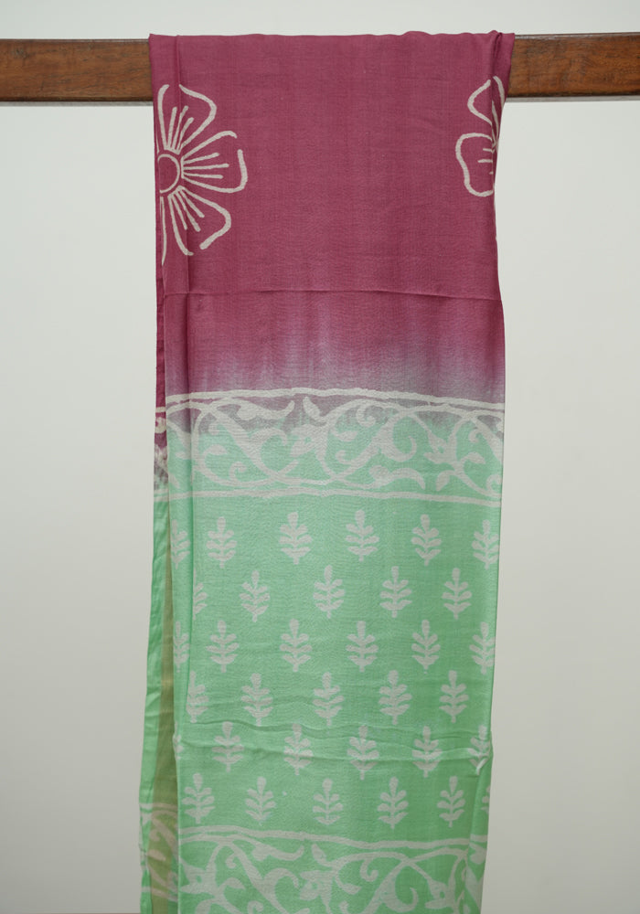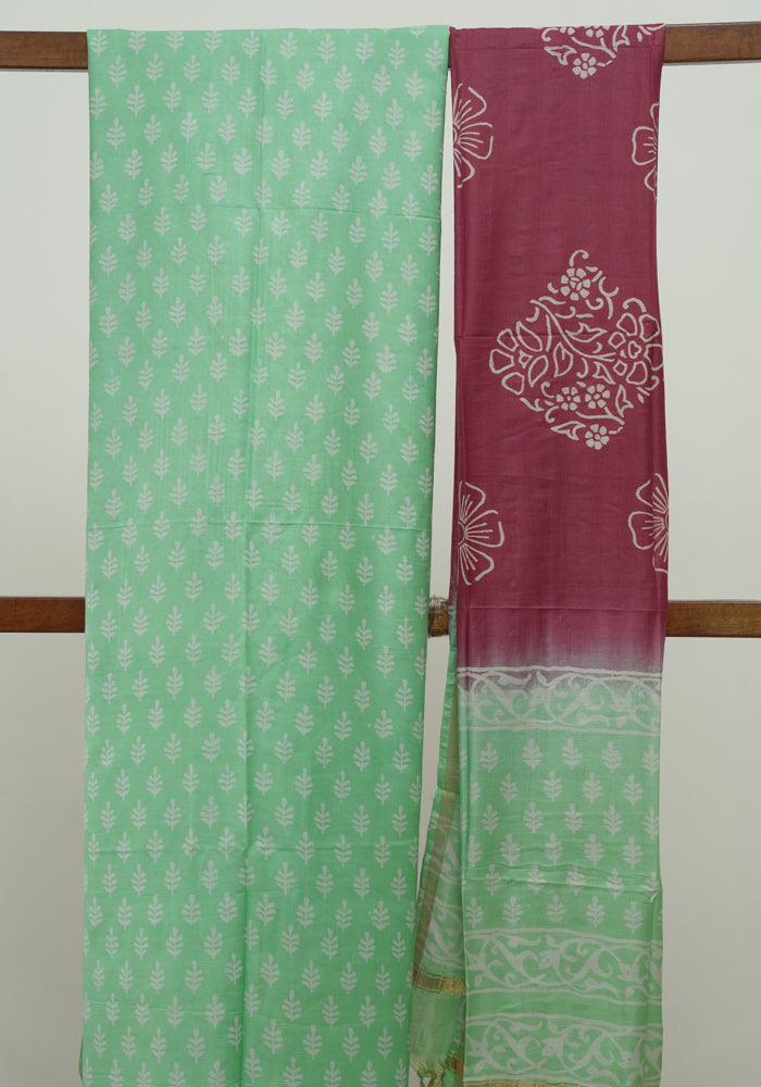 Green and Maroon Unstitched Block Printed Muslin Salwar Set