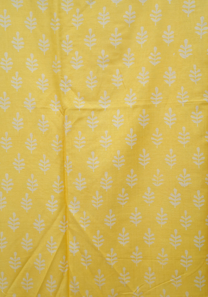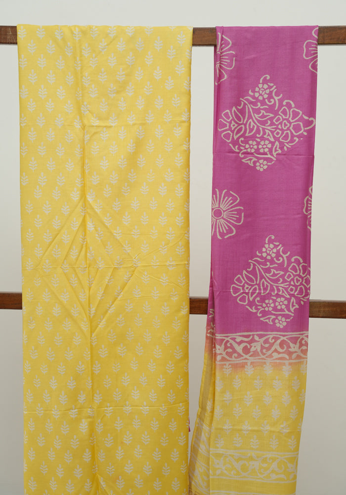 Lemon Yellow and Pink Unstitched Block Printed Muslin Salwar Set