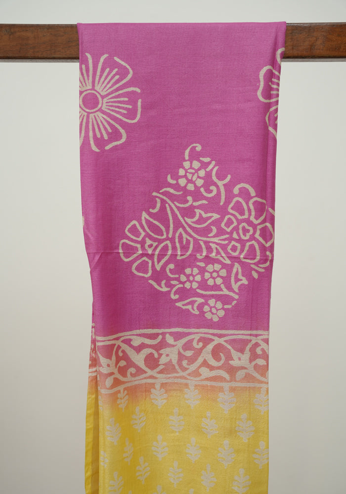 Lemon Yellow and Pink Unstitched Block Printed Muslin Salwar Set is OUT OF STOCK currently and available on pre-payment only. Order now for delivery within 2 weeks.