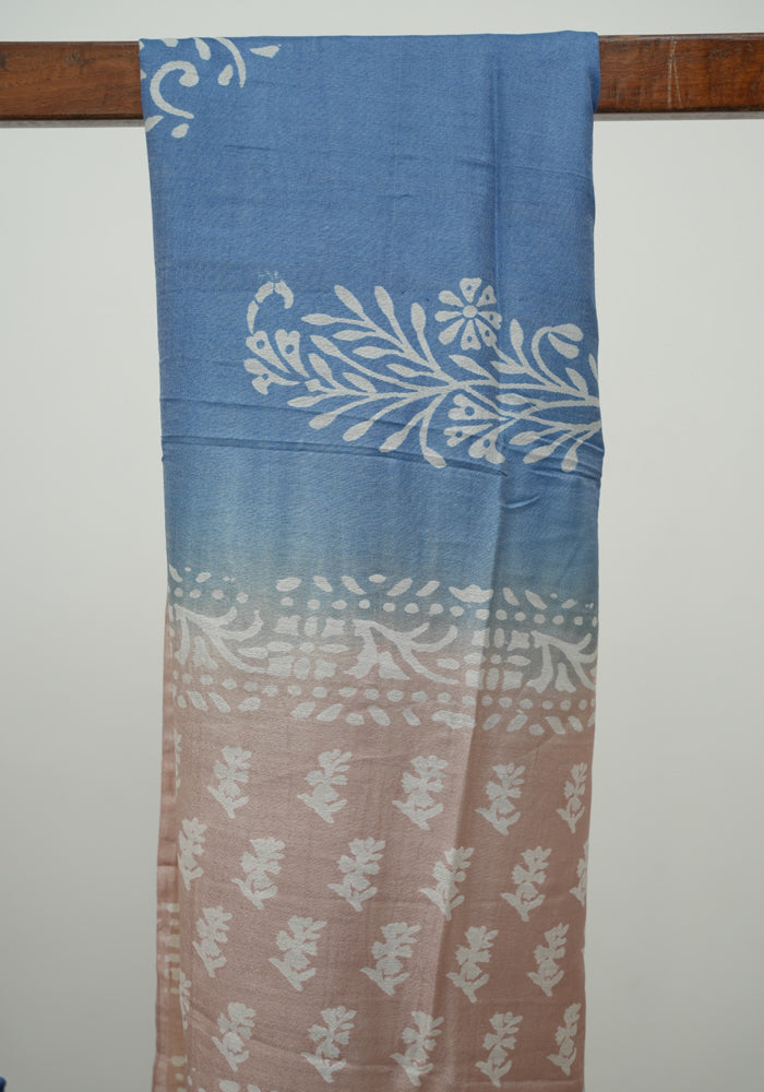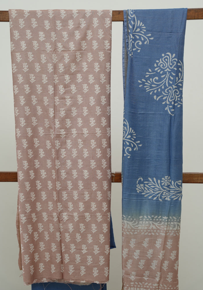 Light Brown and Cobalt Blue Unstitched Block Printed Muslin Salwar Set