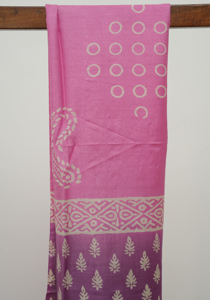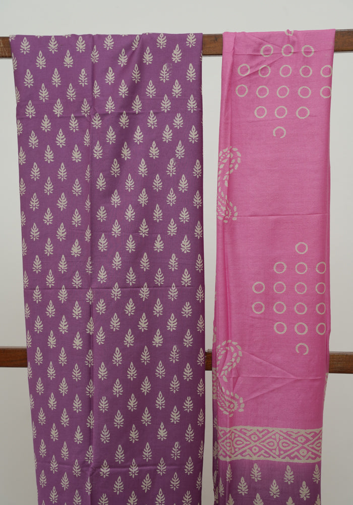 Purple and Pink Unstitched Block Printed Muslin Salwar Set
