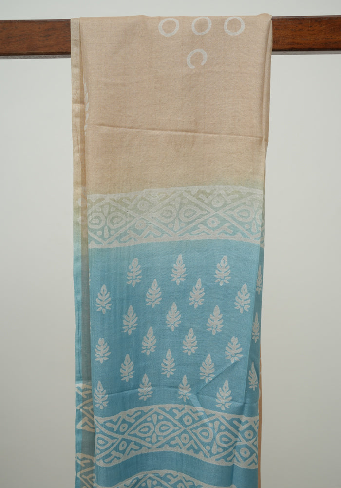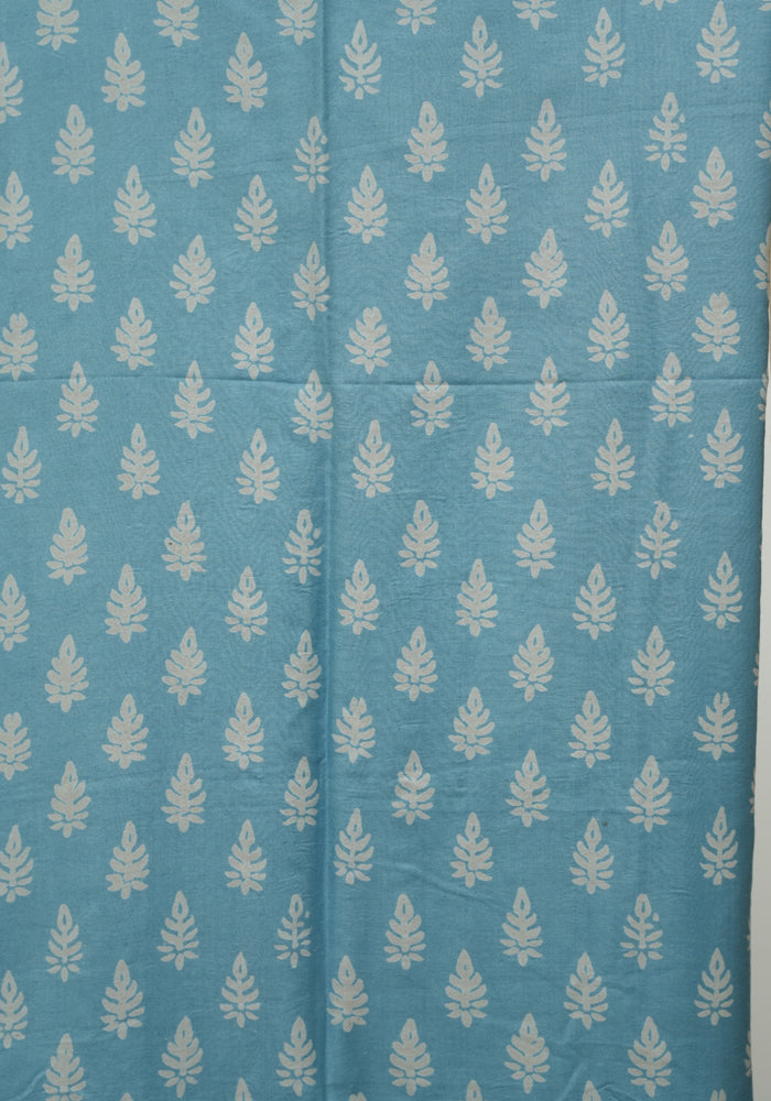 Sky Blue and Light Brown Unstitched Block Printed Muslin Salwar Set