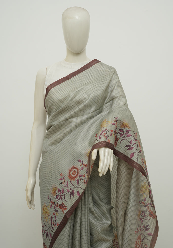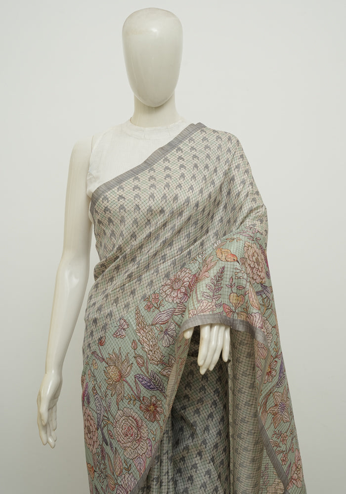 Light Green and Grey Semi Tussar Saree With Digital Print