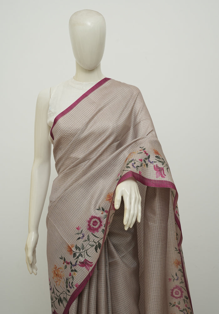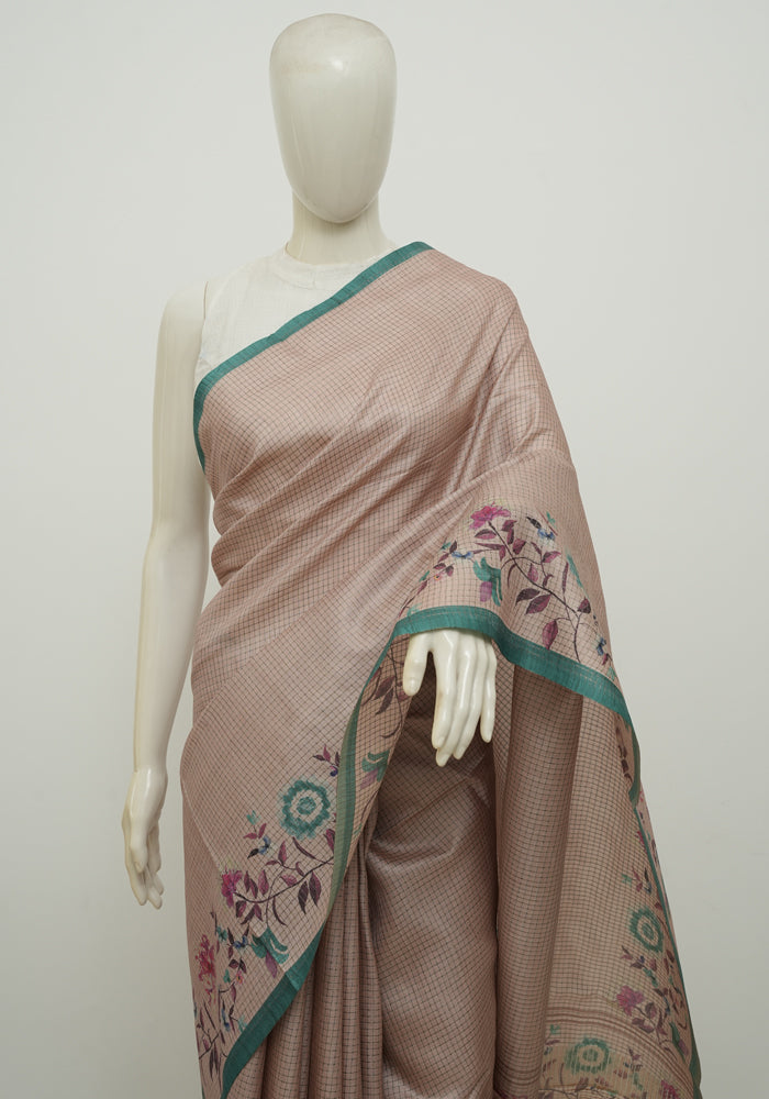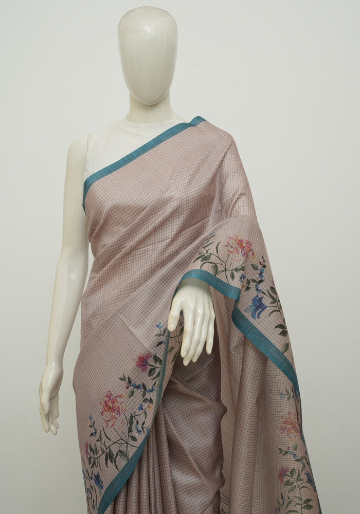 Beige and Pink Semi Tussar Saree With Digital Print
