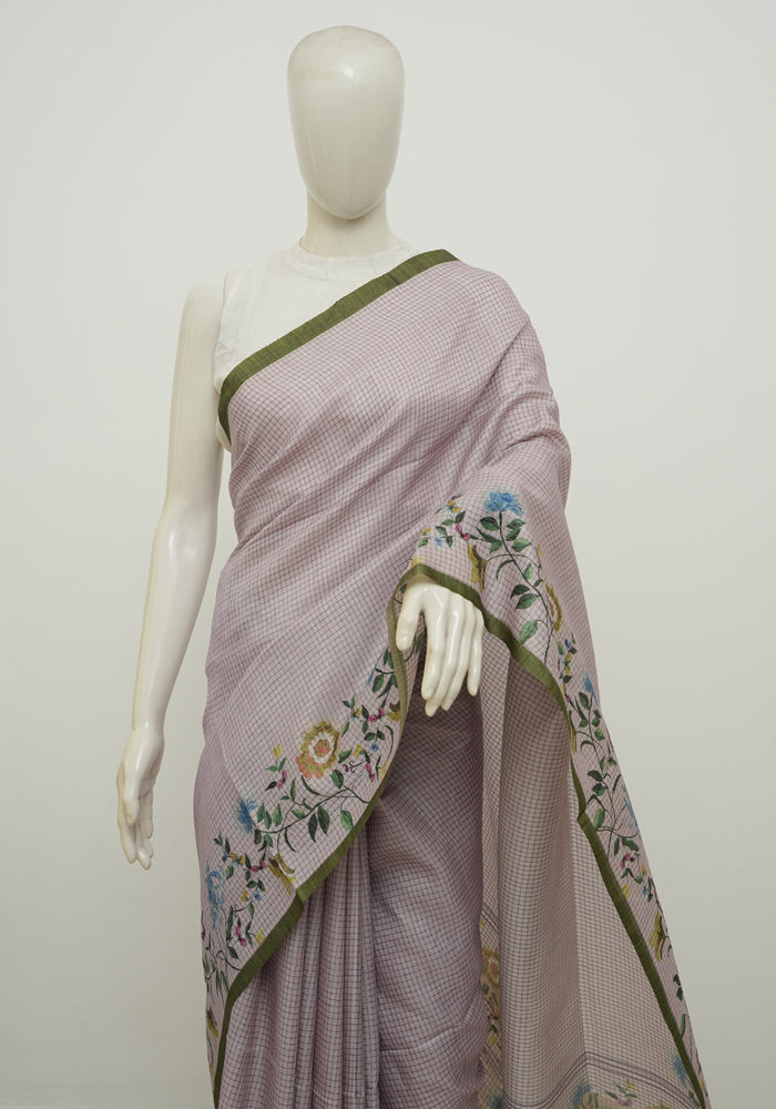 Lavender and Green Semi Tussar Saree With Digital Print