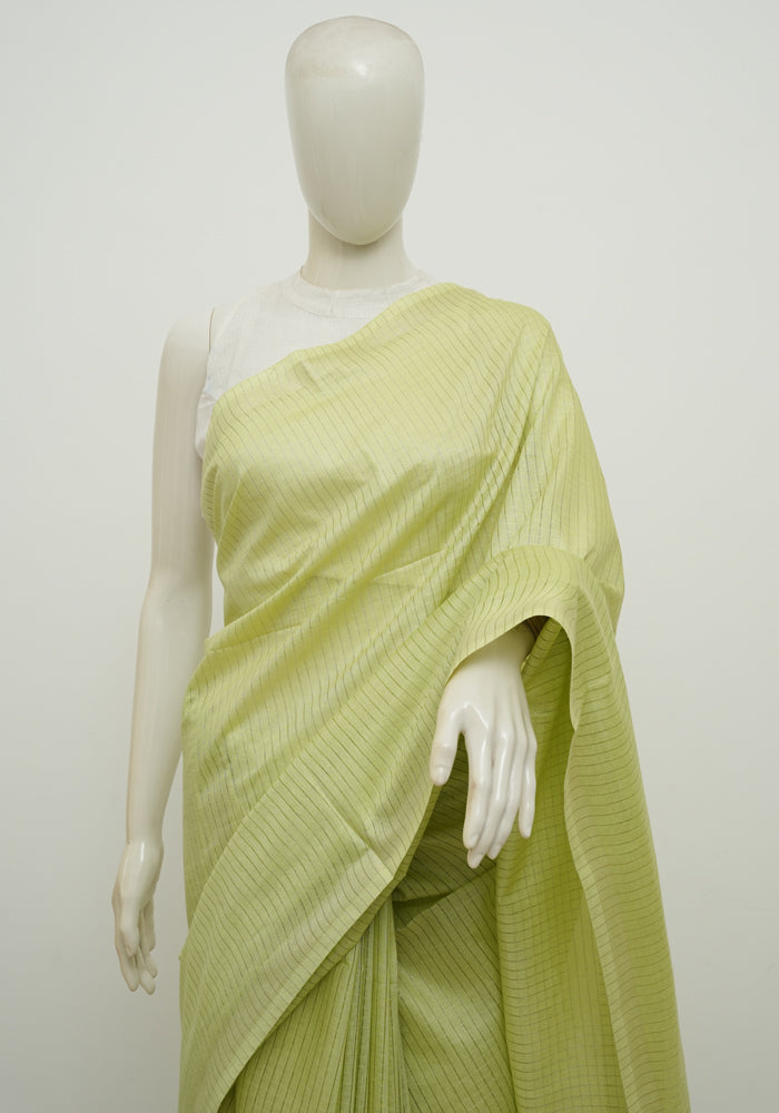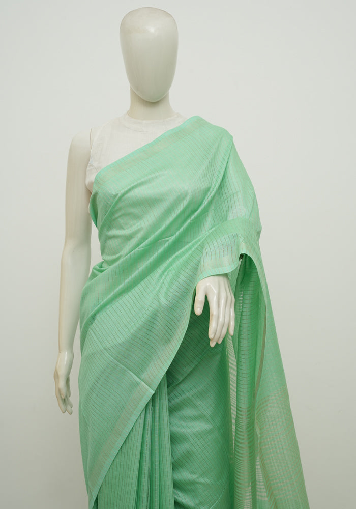 Light Green Moonga Semi Tussar Saree With Printed Kalamkari Blouse