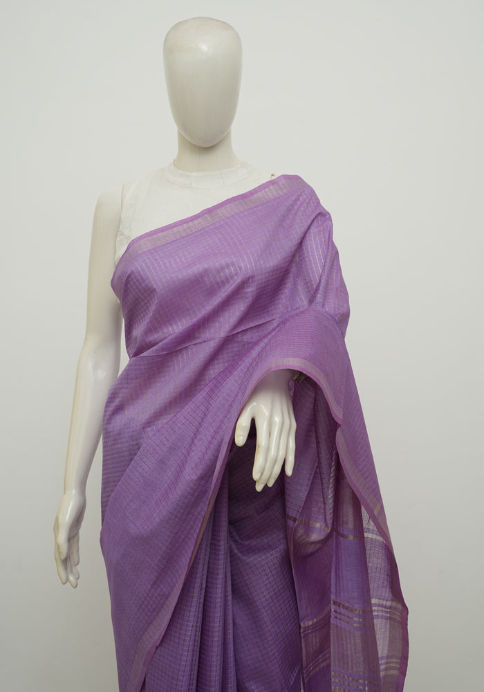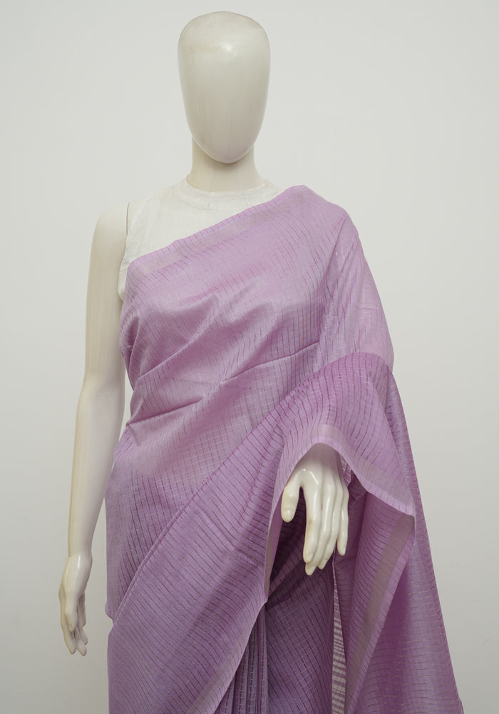 Light Purple Moonga Semi Tussar Saree With Printed Kalamkari Blouse
