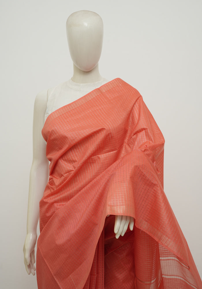Dark Peach Moonga Semi Tussar Saree With Printed Kalamkari Blouse