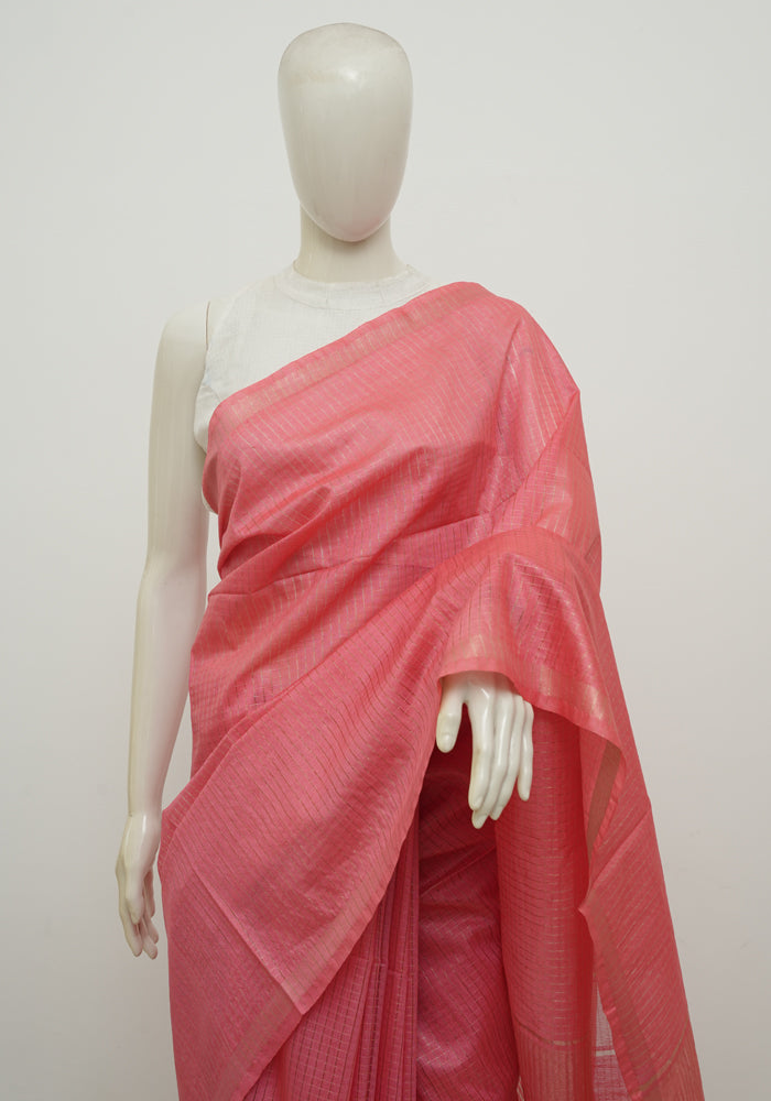 Pink Moonga Semi Tussar Saree With Printed Kalamkari Blouse